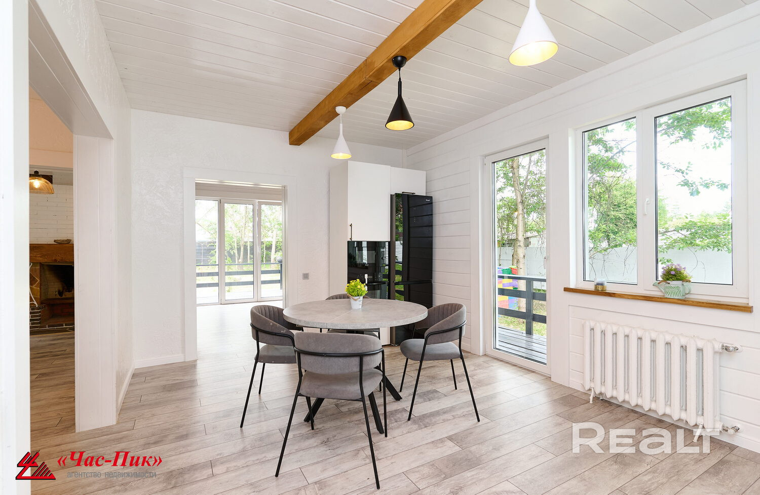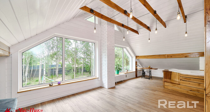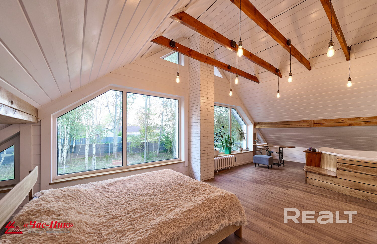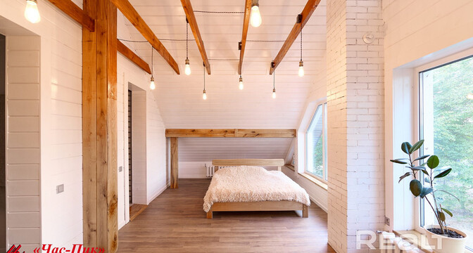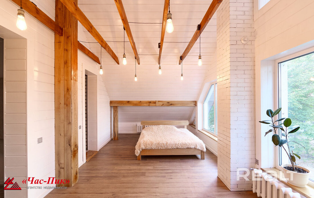 Тут необычные спальни. Продается красивый коттедж в Колодищах с березовой рощей на участке