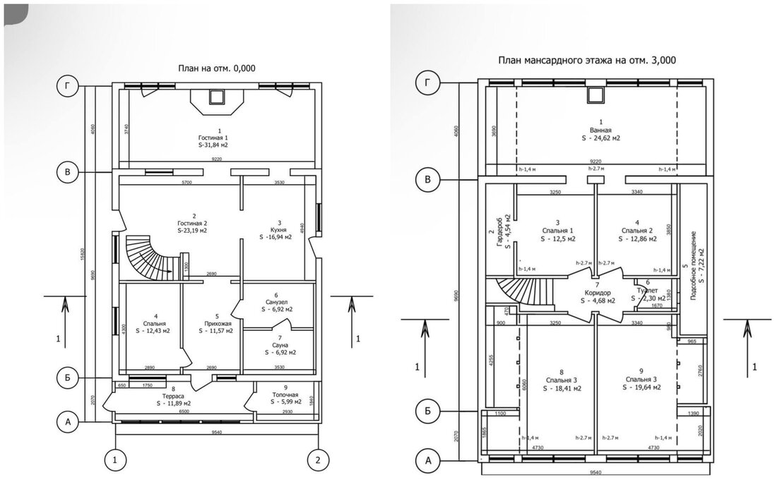 На втором мансардном этаже разместились спальни. Некоторые из них идут с ванными и умывальниками.