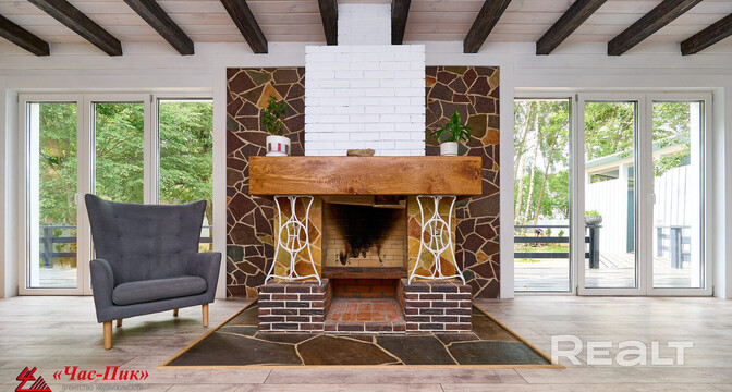 Дом был построен в Колодищах в 2025 году. Он стоит на монолитном железобетонном фундаменте с утеплением и гидроизоляцией. Стены — каркасные с утеплением в 15 см. На крыше лежит металлочерепица с утеплением 20 см. Площадь коттеджа — 234,49 м².
