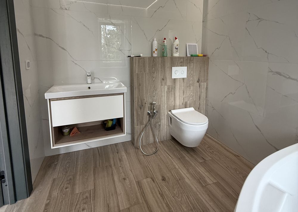 Дом новый, построен в 2025 году по индивидуальному проекту. Стены газосиликатные с утеплением, на крыше – модульная черепица.