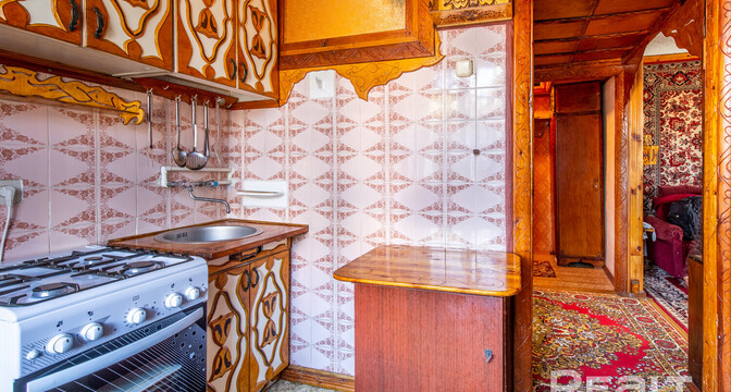 Еще одна квартира продается на этой же улице в доме № 12. Он также пятиэтажный и 1968 года постройки. Двушка находится на третьем уровне и занимает 34,8 м². На кухню приходится 6,3 квадрата.