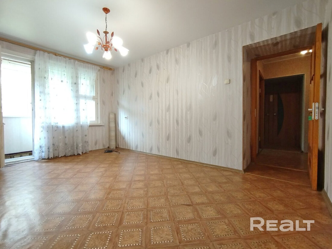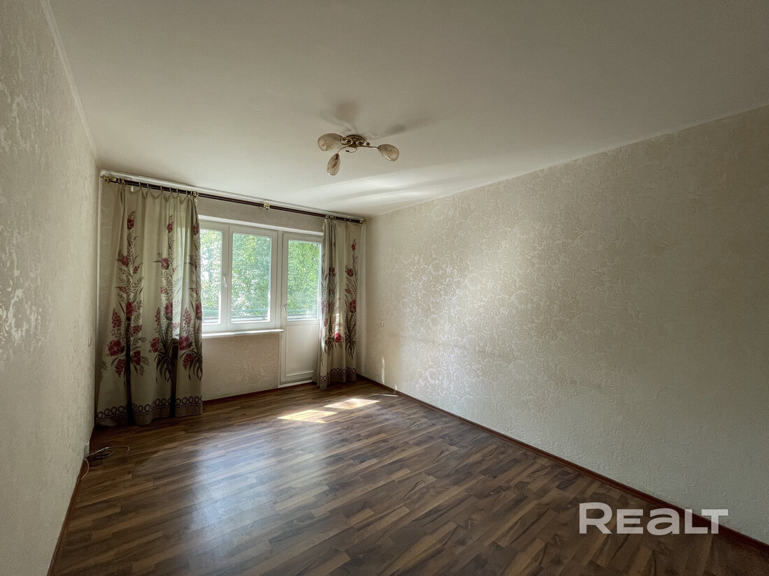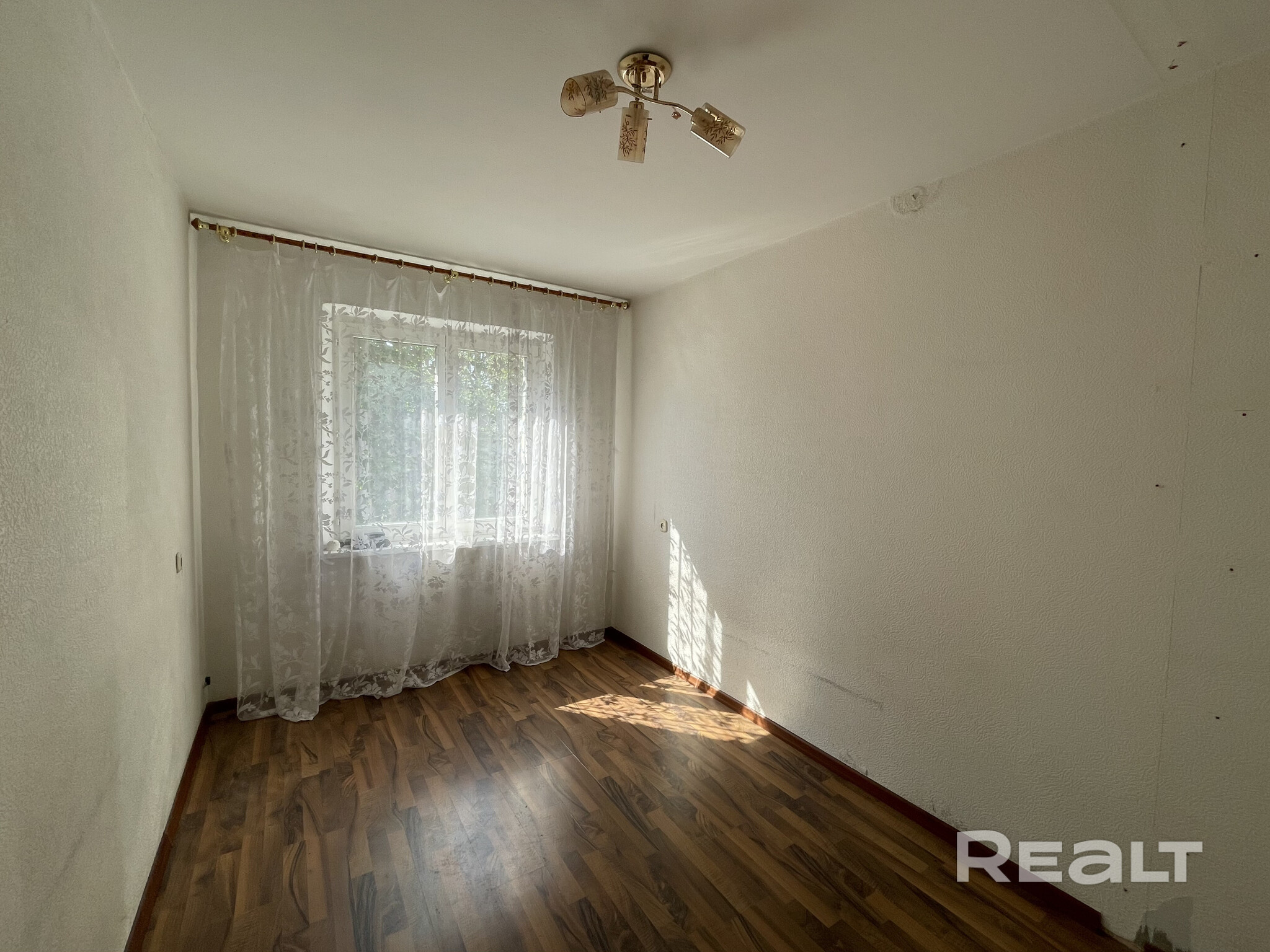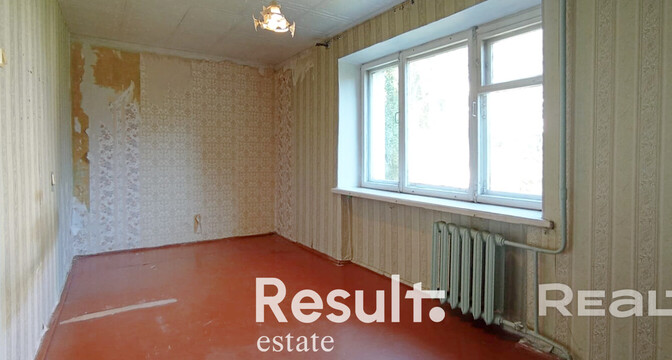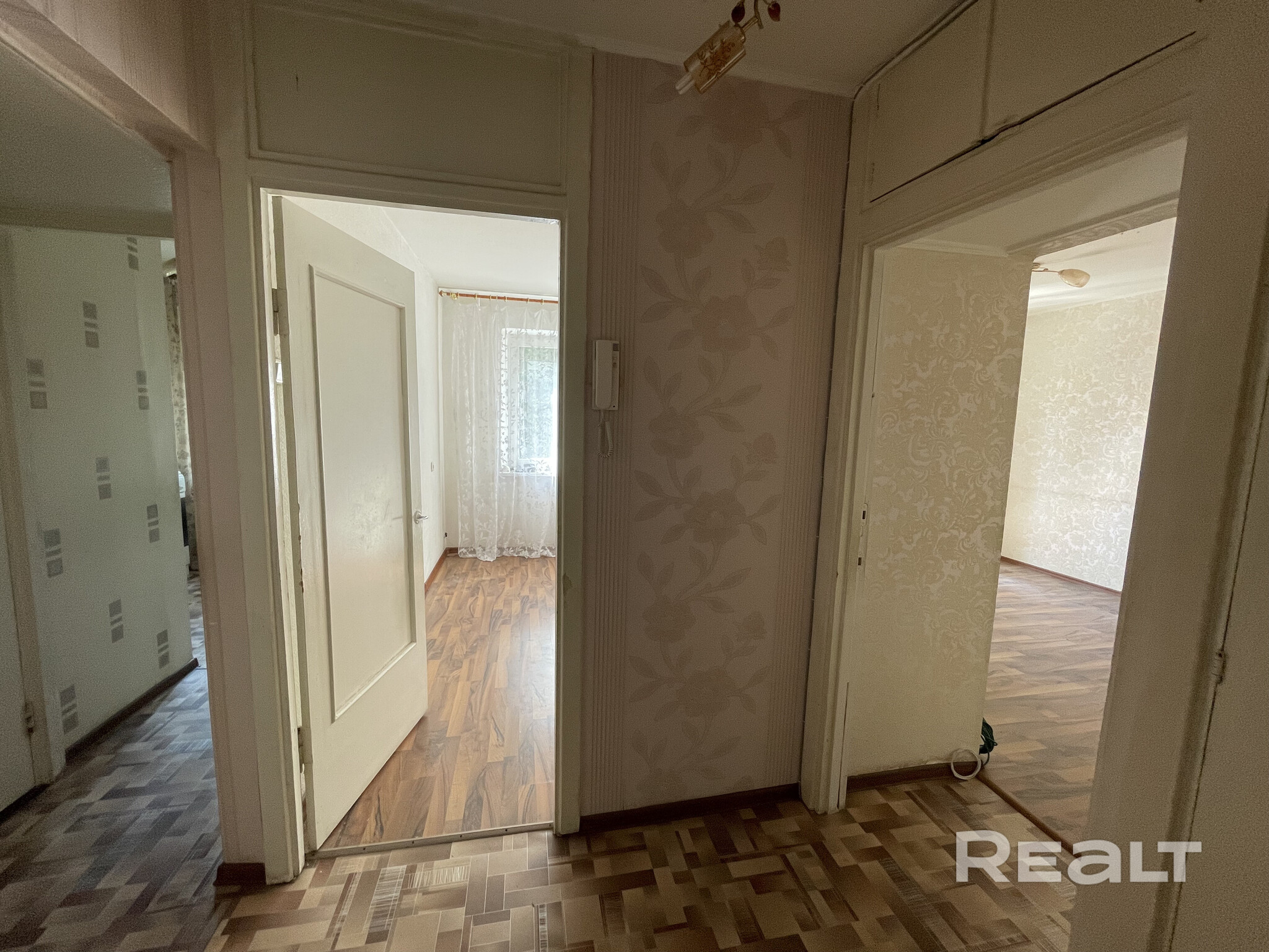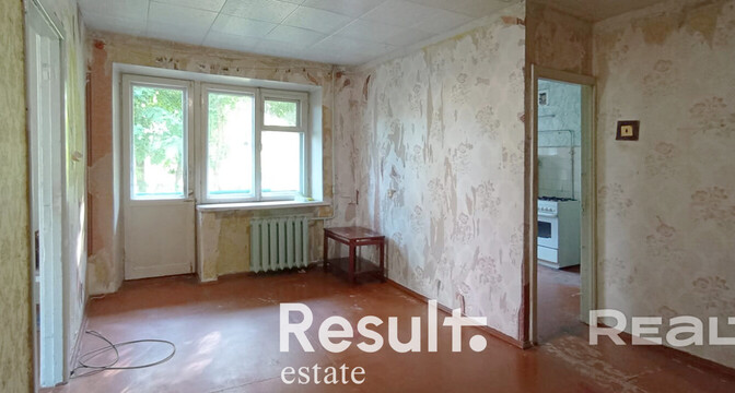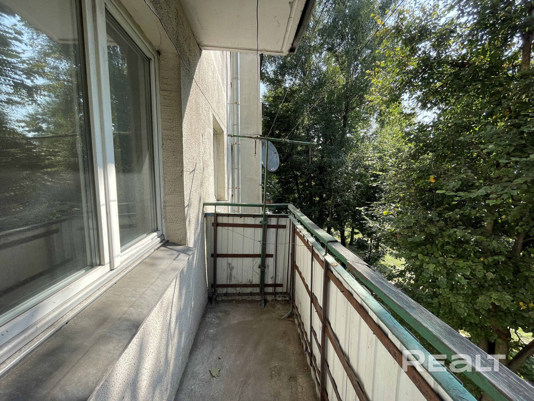 Квартира требует некоторых обновлений. Здесь стоят стеклопакеты, лежат линолеум и плитка. Две изолированные комнаты освободили от мебели и техники. В коридоре есть встроенные шкафы. Из комнаты сделан выход на открытый балкон.