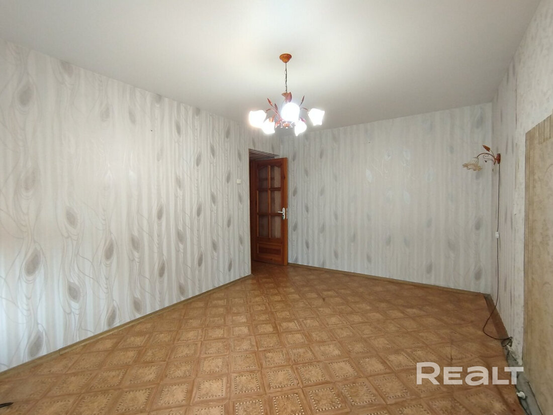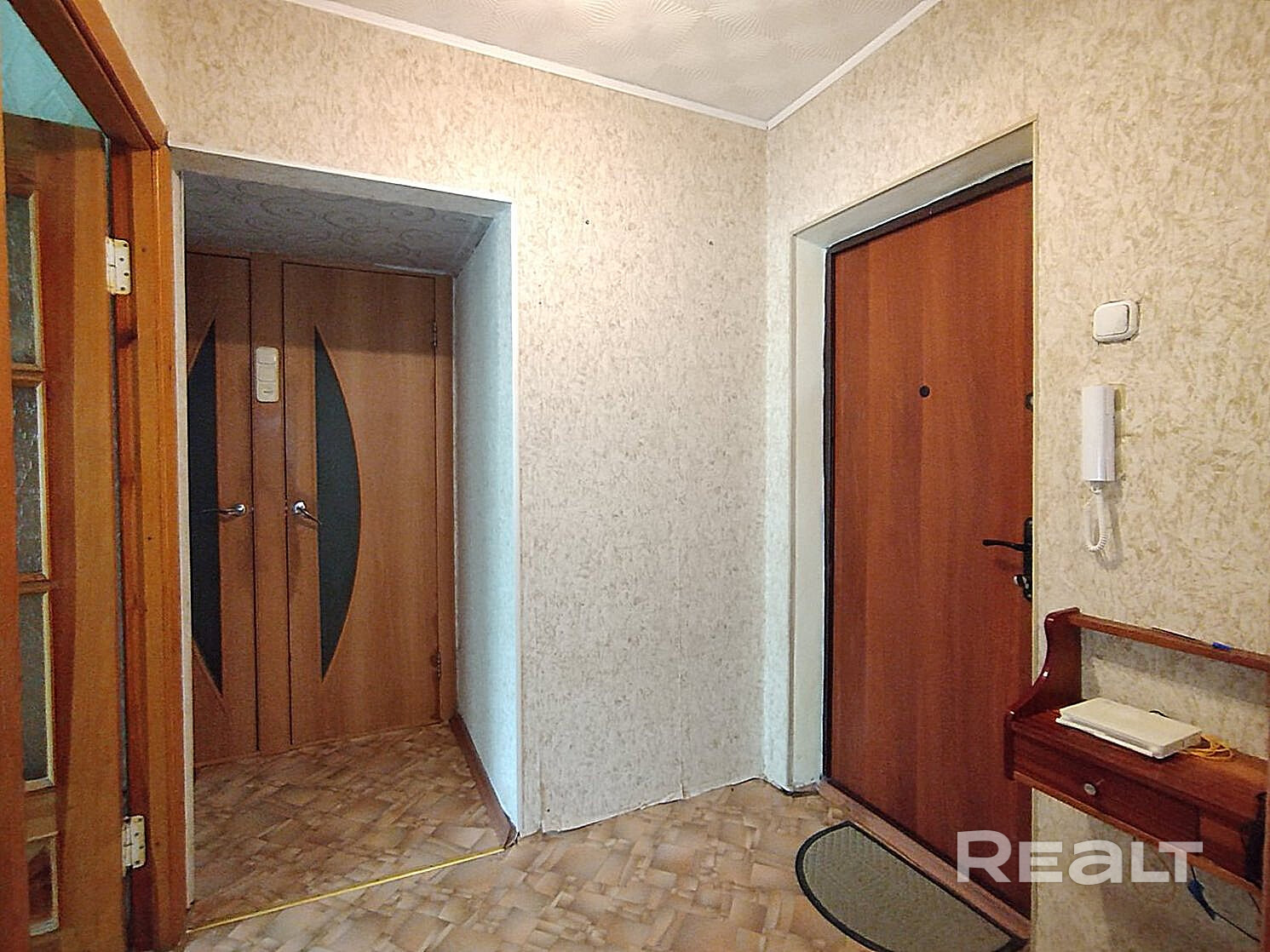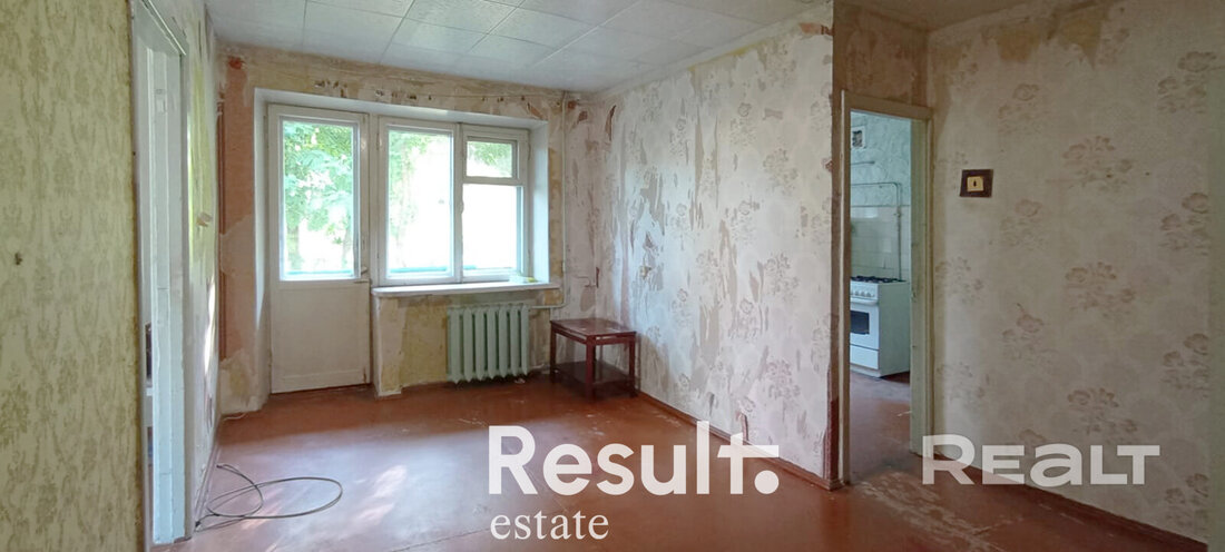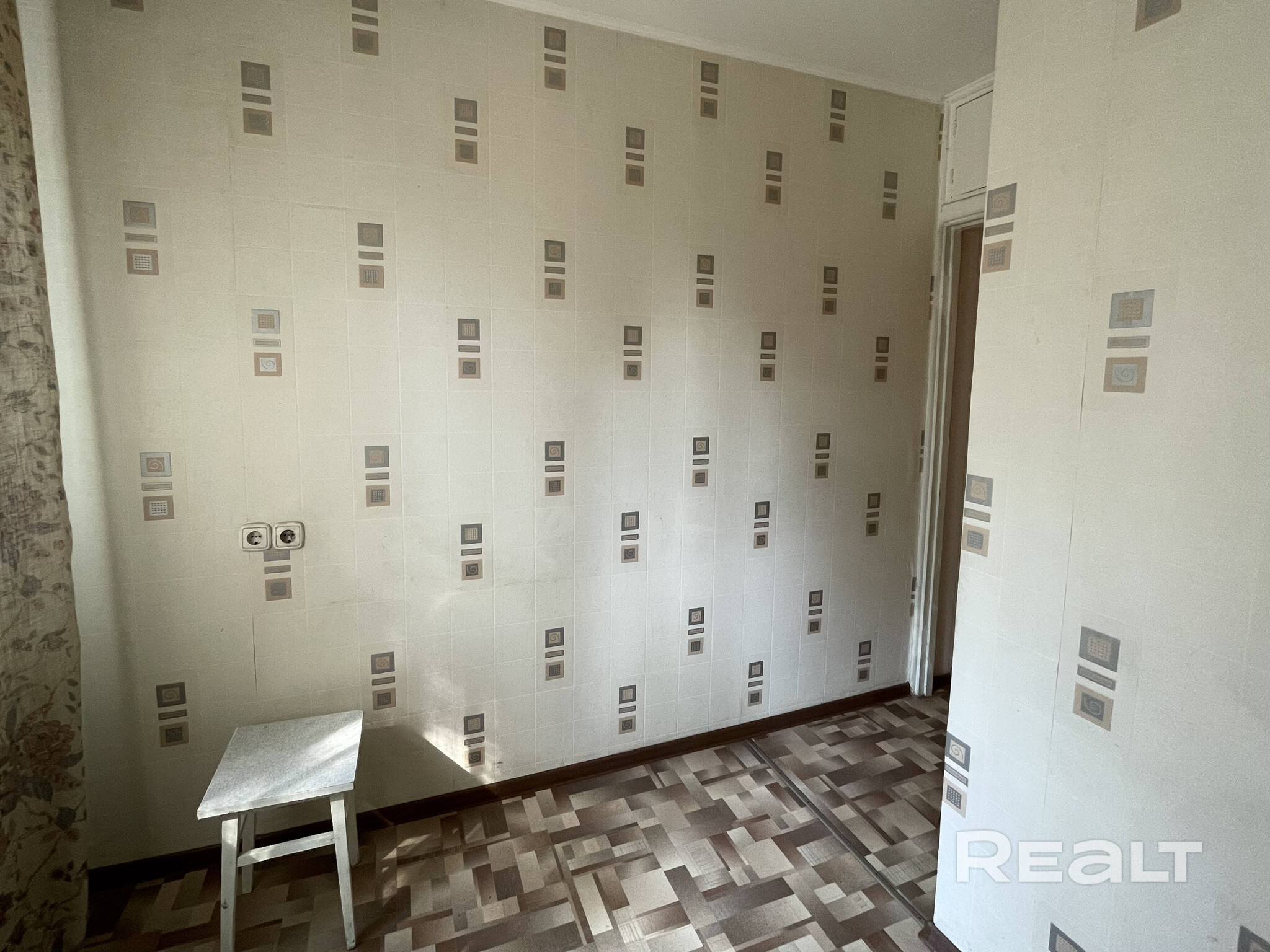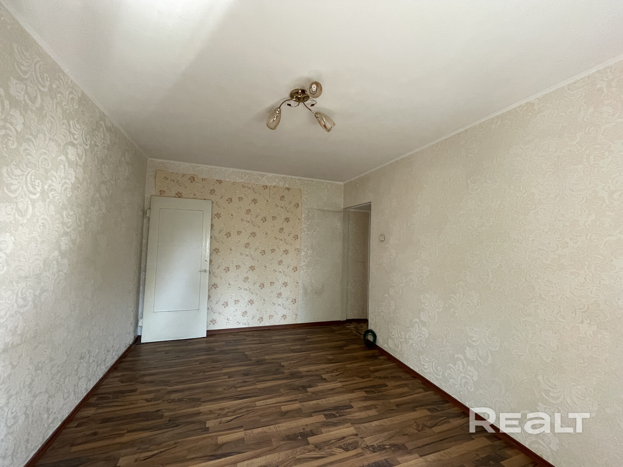 Квартира требует некоторых обновлений. Здесь стоят стеклопакеты, лежат линолеум и плитка. Две изолированные комнаты освободили от мебели и техники. В коридоре есть встроенные шкафы. Из комнаты сделан выход на открытый балкон.