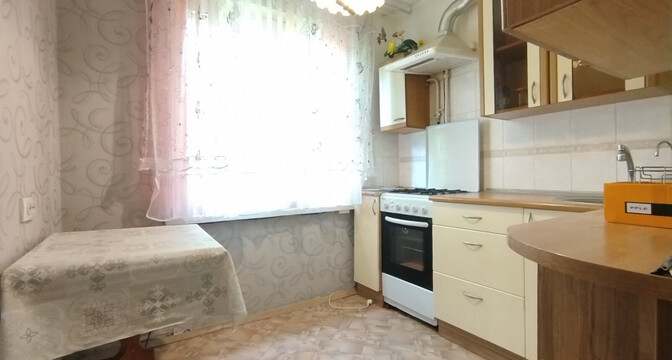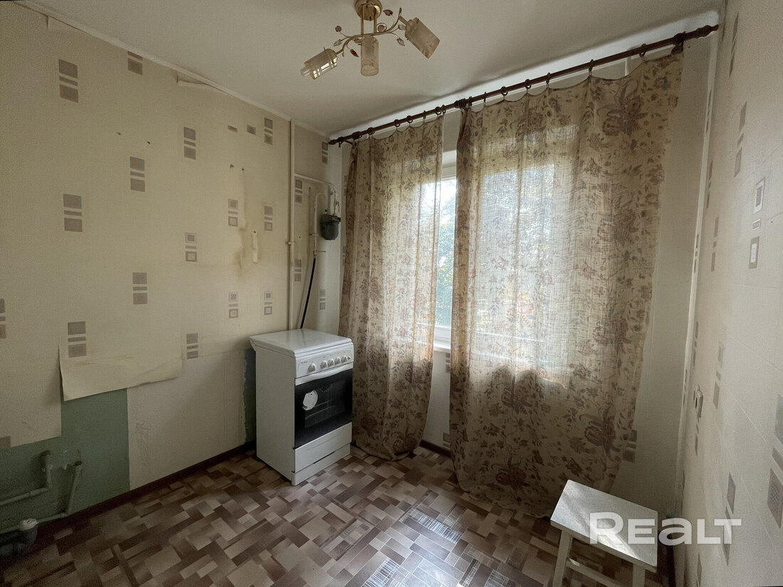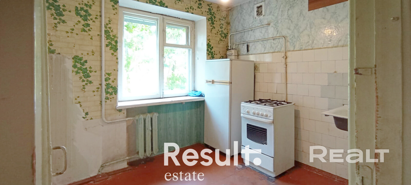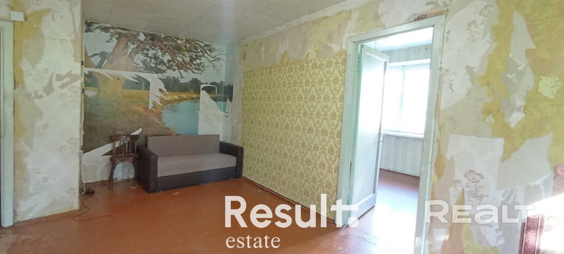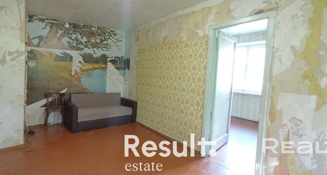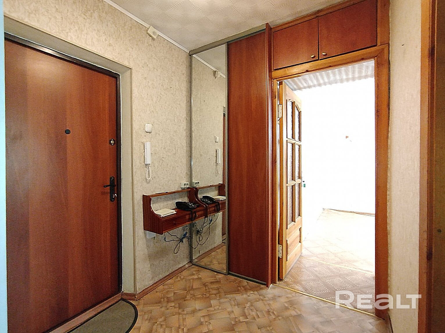 Квартира требует некоторых обновлений. Здесь стоят стеклопакеты, лежат линолеум и плитка. Две изолированные комнаты освободили от мебели и техники. В коридоре есть встроенные шкафы. Из комнаты сделан выход на открытый балкон.