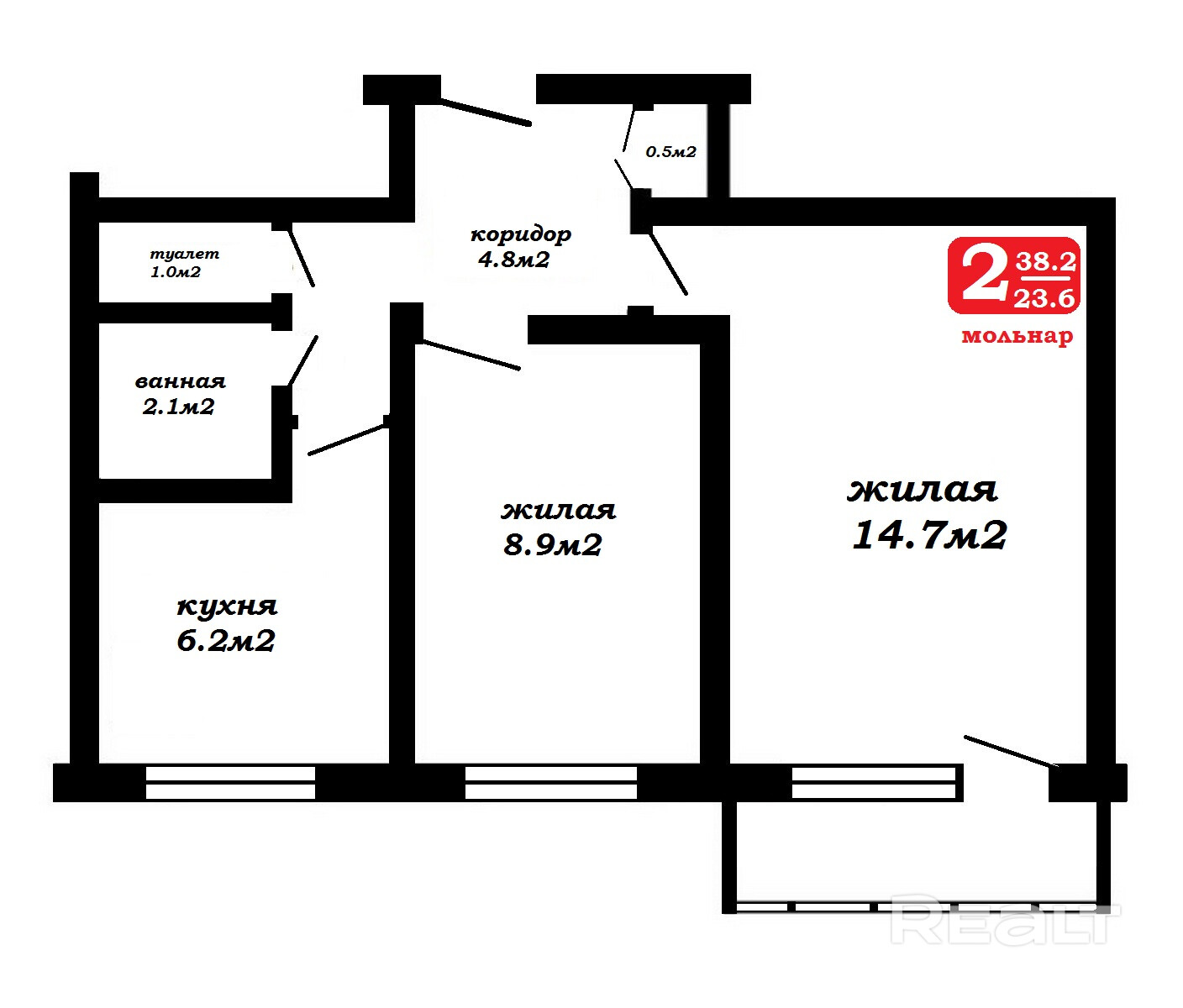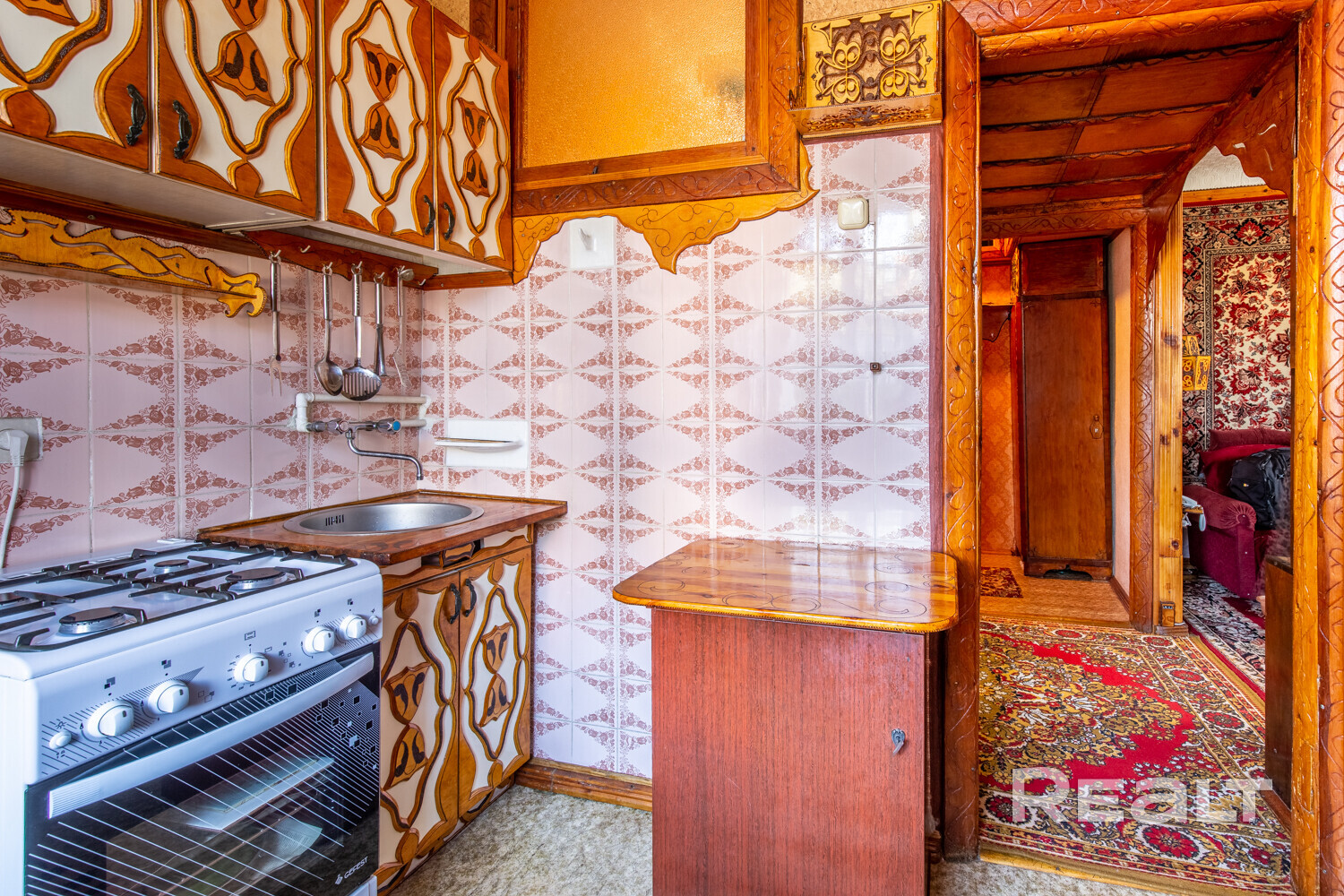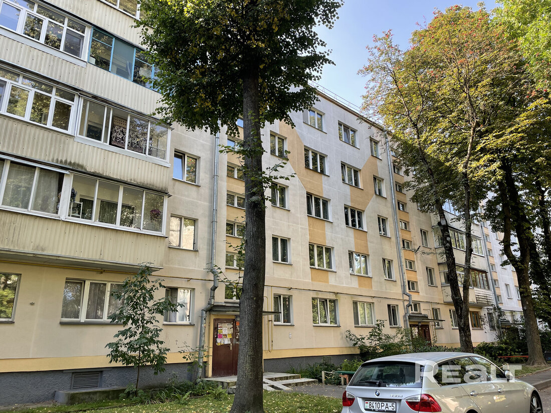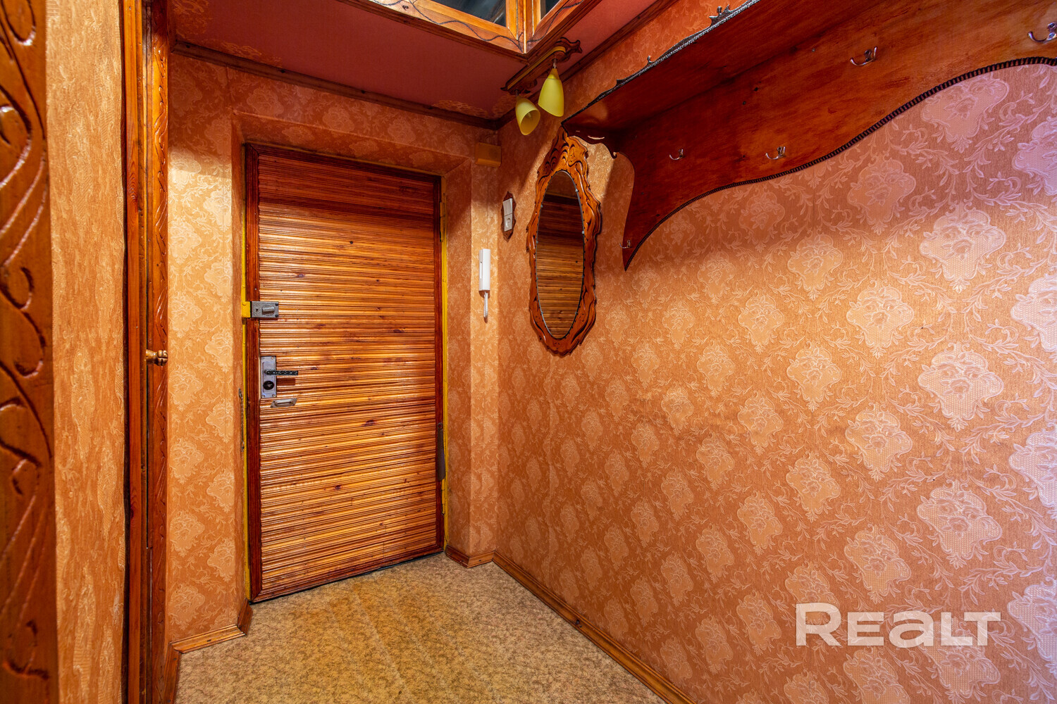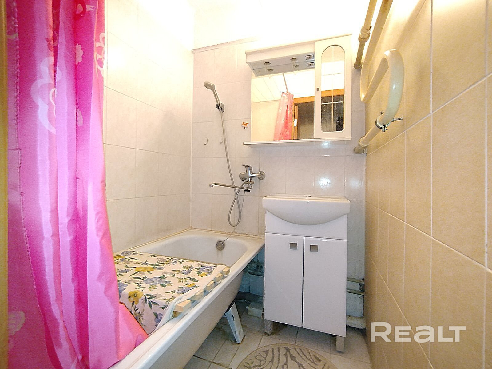Квартира требует некоторых обновлений. Здесь стоят стеклопакеты, лежат линолеум и плитка. Две изолированные комнаты освободили от мебели и техники. В коридоре есть встроенные шкафы. Из комнаты сделан выход на открытый балкон.