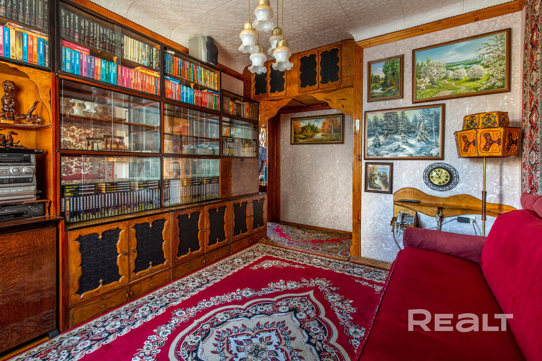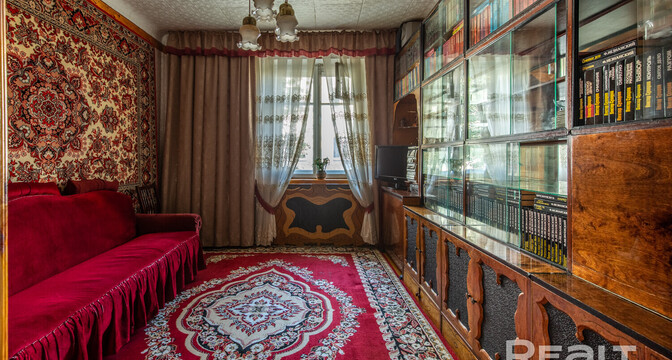 Жилье выглядит аккуратно. Тут две раздельные комнаты. На полу преимущественно лежит линолеум, в окнах стоят стеклопакеты. В коридоре есть встроенные шкафы. Также имеется застекленный балкон и место в подвале.