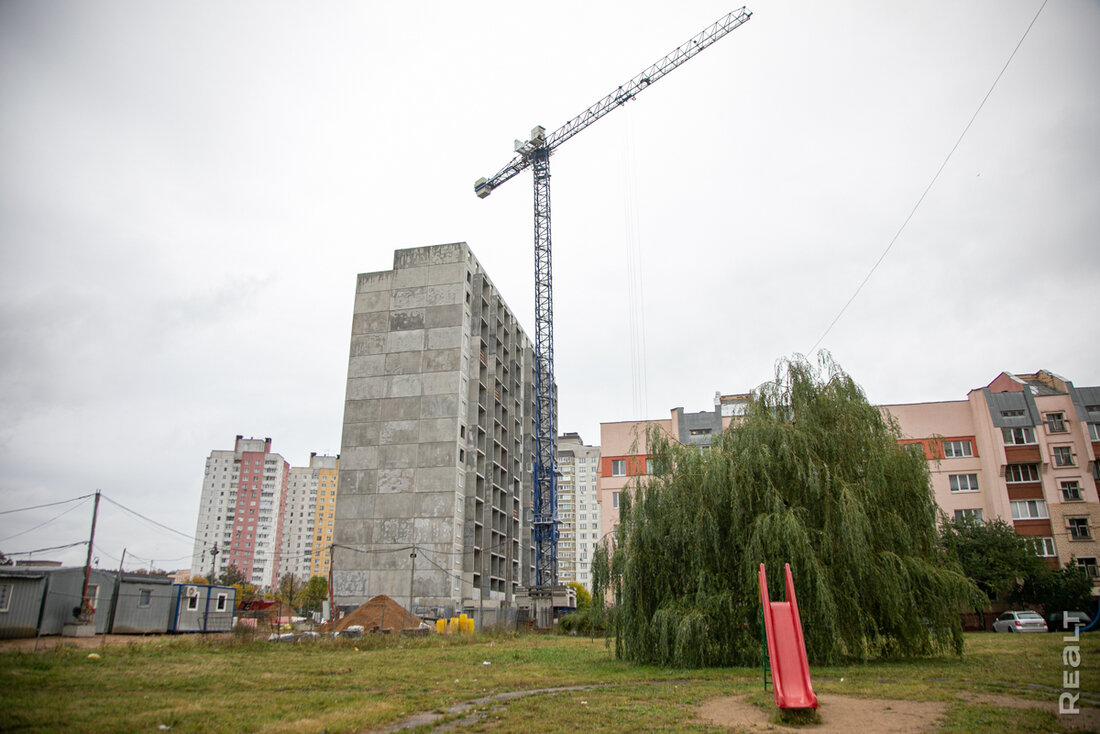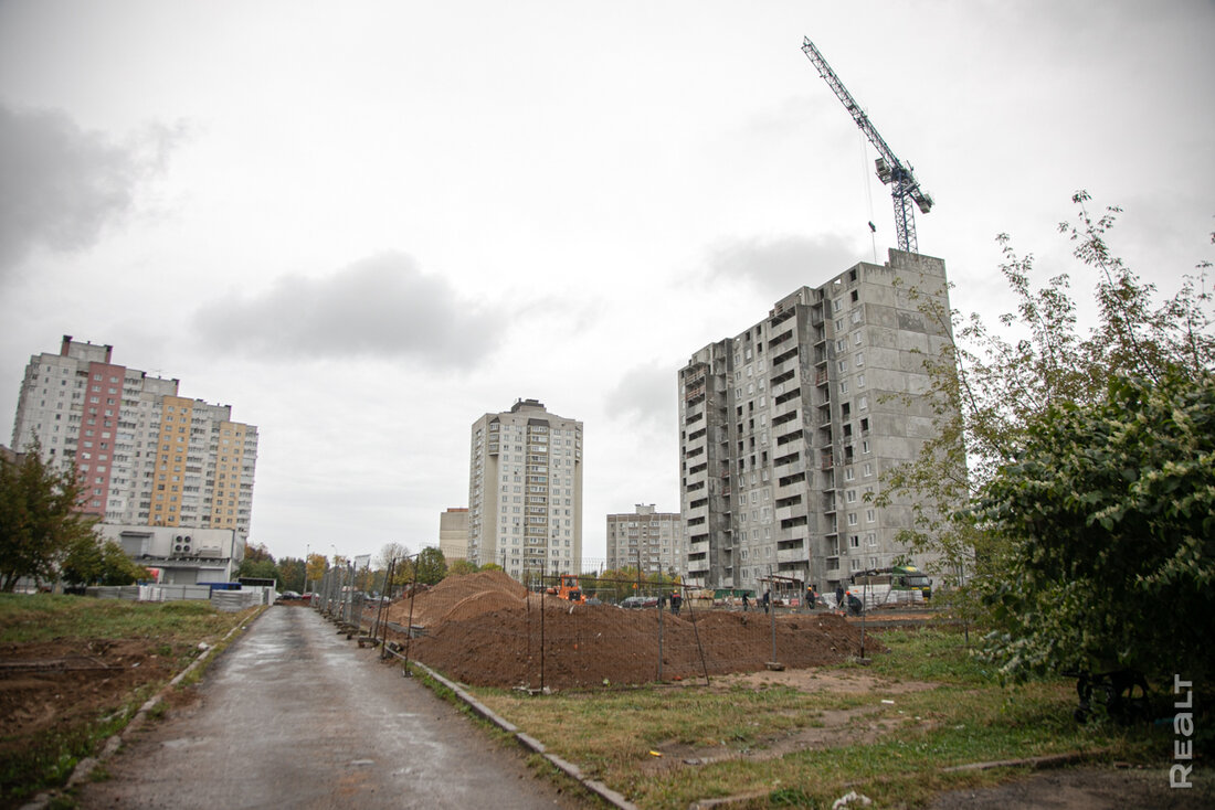 Дело в том, что проект, по которому строится здание, можно назвать для Минска экспериментальным. Это — новая серия 24-РС от Завода эффективных промышленных конструкций. Аналогичные дома строятся в Новинках (первый недавно сдали, но с большим опозданием) и на улице Купревича.
