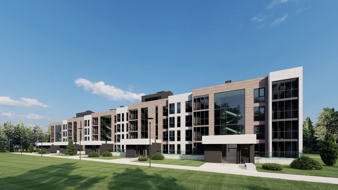 Двенадцатая очередь квартала от компании «Айрон» расположится чуть дальше от реки, но ближе к участку леса и экотропе. Дом 12.2 (по генплану) будет состоять из 4 этажей, 5 подъездов и 60 квартир. Здесь запроектированы однушки и трешки. В каждом подъезде будет лифт.