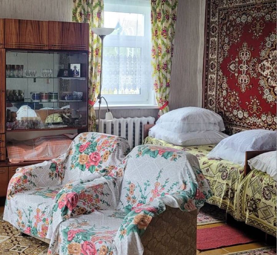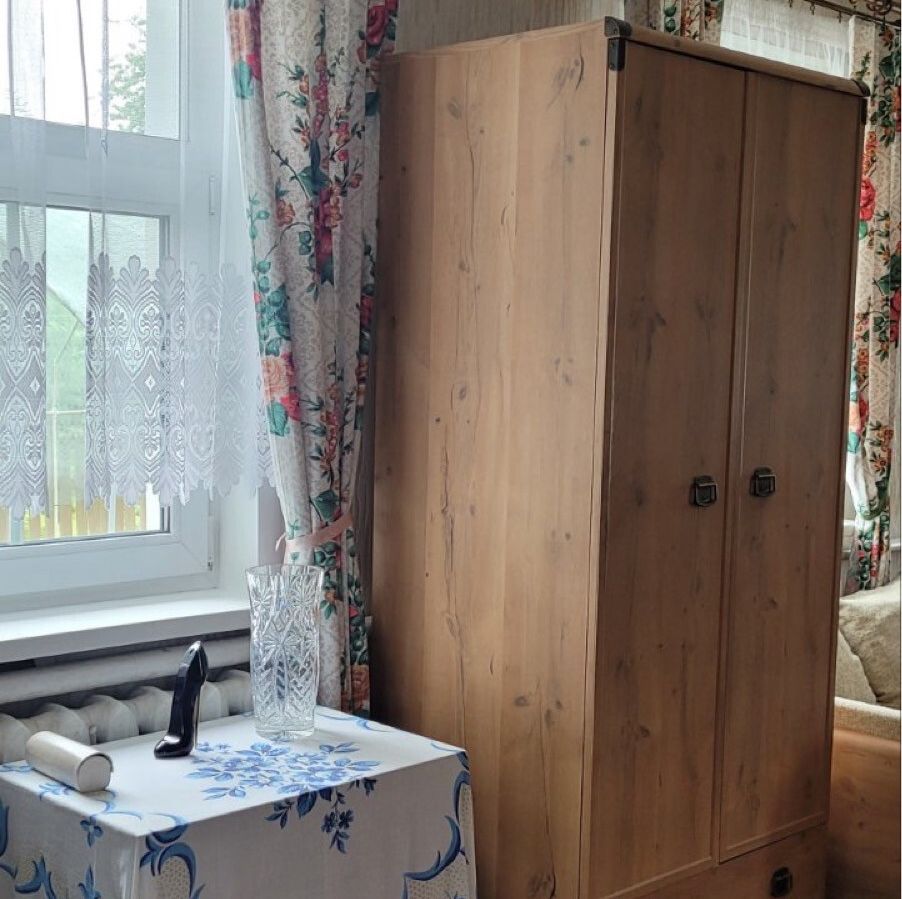 В доме был сделан косметический ремонт, в комнатах светло и опрятно. Владельцы сохранили русскую печь — она рабочая, можно пользоваться. Основе же отопление электрическое. А вот удобства все во дворе — туалет уличный, вода в колодце.