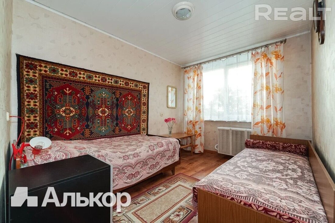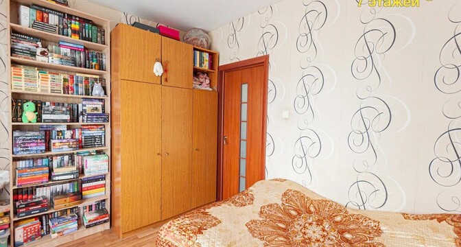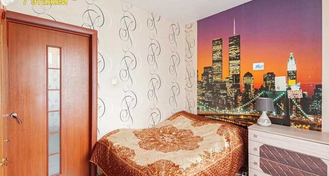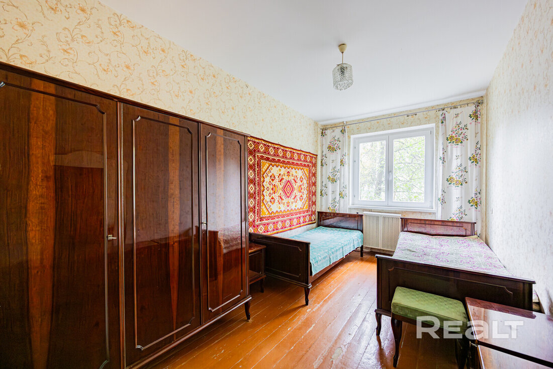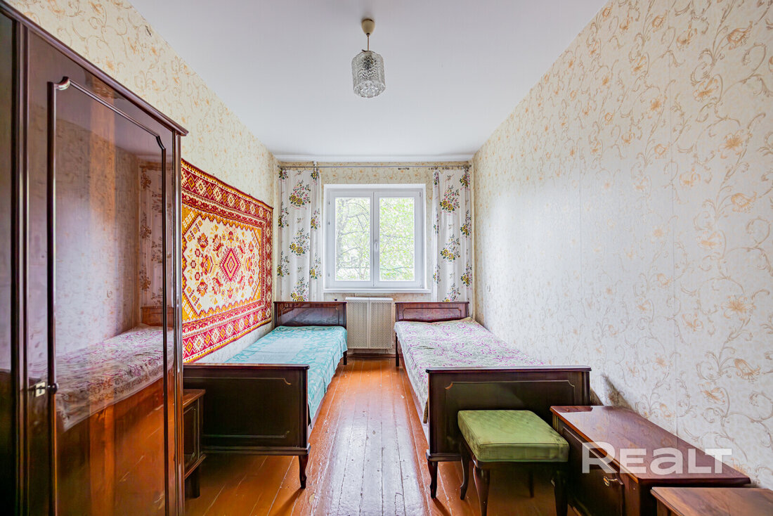 Это жилье также нуждается в обновлении. Из гостиной есть выход в небольшой коридор, где расположились две спальни и кладовая. Балкона тут нет. Полы — деревянные. В окнах, что выходят на две стороны, стоят стеклопакеты.