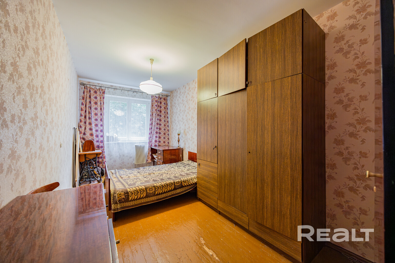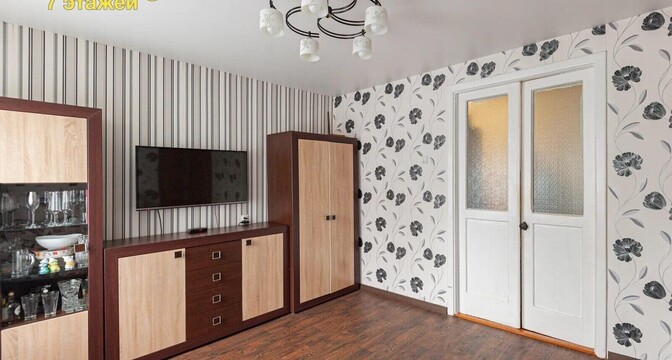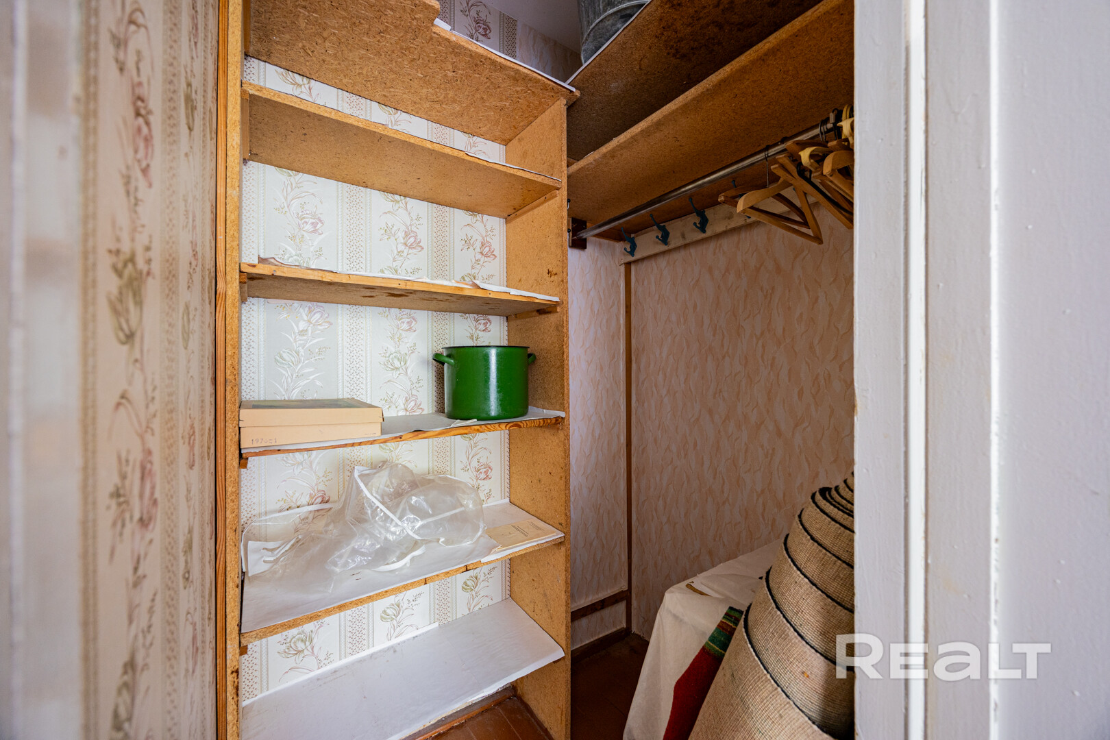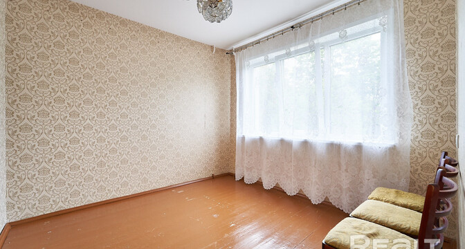 Комнаты нуждаются в ремонте. Здесь стоят стеклопакеты в окнах, на полу лежат доски. Одна из комнат — проходная. В изолированной спальне есть кладовая, которую можно переделать в гардеробную. В квартире частично остается мебель.