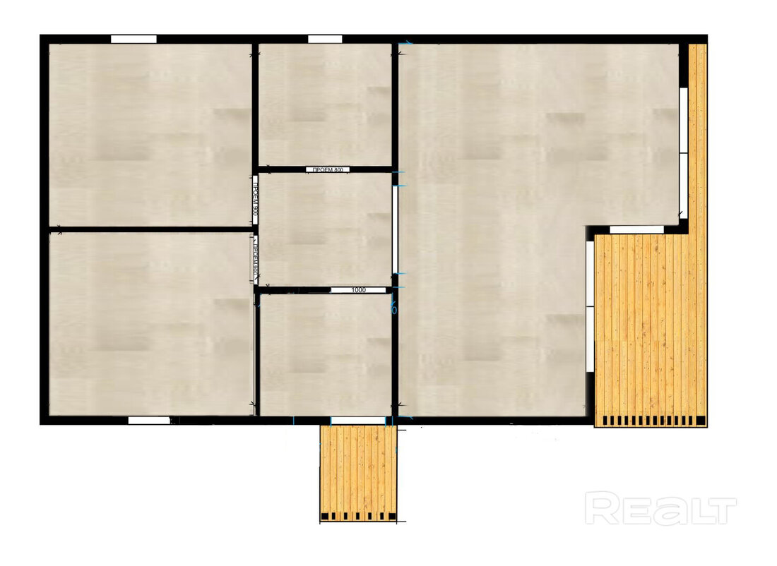 В доме выделена совмещенная кухня-гостиная с выходом на крытую террасу. Покупателю остается лишь обставить комнаты мебелью и техникой. Под кухню уже выведены коммуникации.