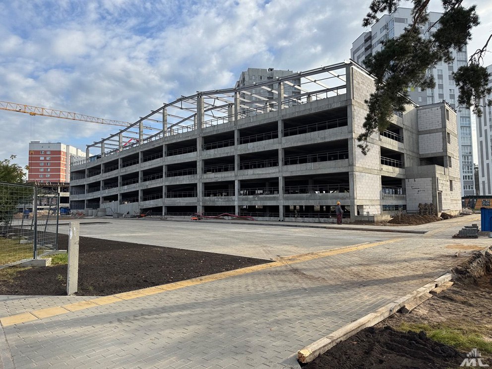 Из трех паркингов, каждый на 292 машино/места, один завершен полностью, на втором необходимо выполнить волнообразную кровлю и внутренние работы.