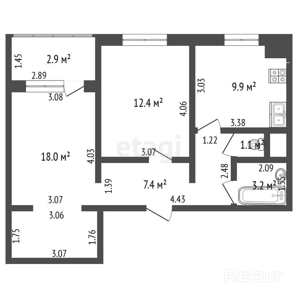 Также в продаже есть двухкомнатная квартира площадью 54 квадратных метра. Жилье расположено на четвертом этаже. Вся мебель и техника здесь — новые. В квартире — отдельная кухня и две комнаты. Большая комната с выходом на лоджию уже зонирована на уютную спальню и детскую с удобными системами хранения. Вторая комната оборудована как комфортная гостиная. Стоимость — 89,9 тысячи долларов (1638 долларов — за метр).