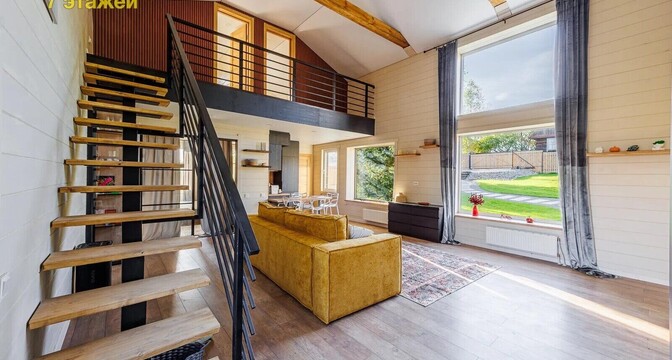 Между двумя горнолыжными центрами находится СТ «Веряги». Там выставлена на продажу каркасная дача. Ее возвели в два этажа. Жилье может стать альтернативой трешке в новостройке. Во-первых, дом построили в этом году. Во-вторых, здесь уже сделан ремонт, имеется мебель, техника. В-третьих, дача составит конкуренцию и по цене. А в придачу к дому — ухоженный участок с баней и купелью. Смотрим.