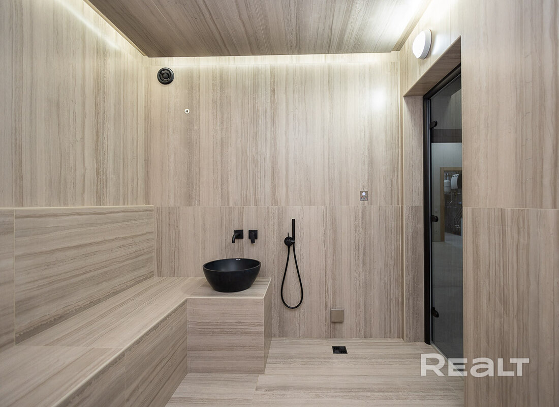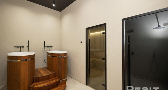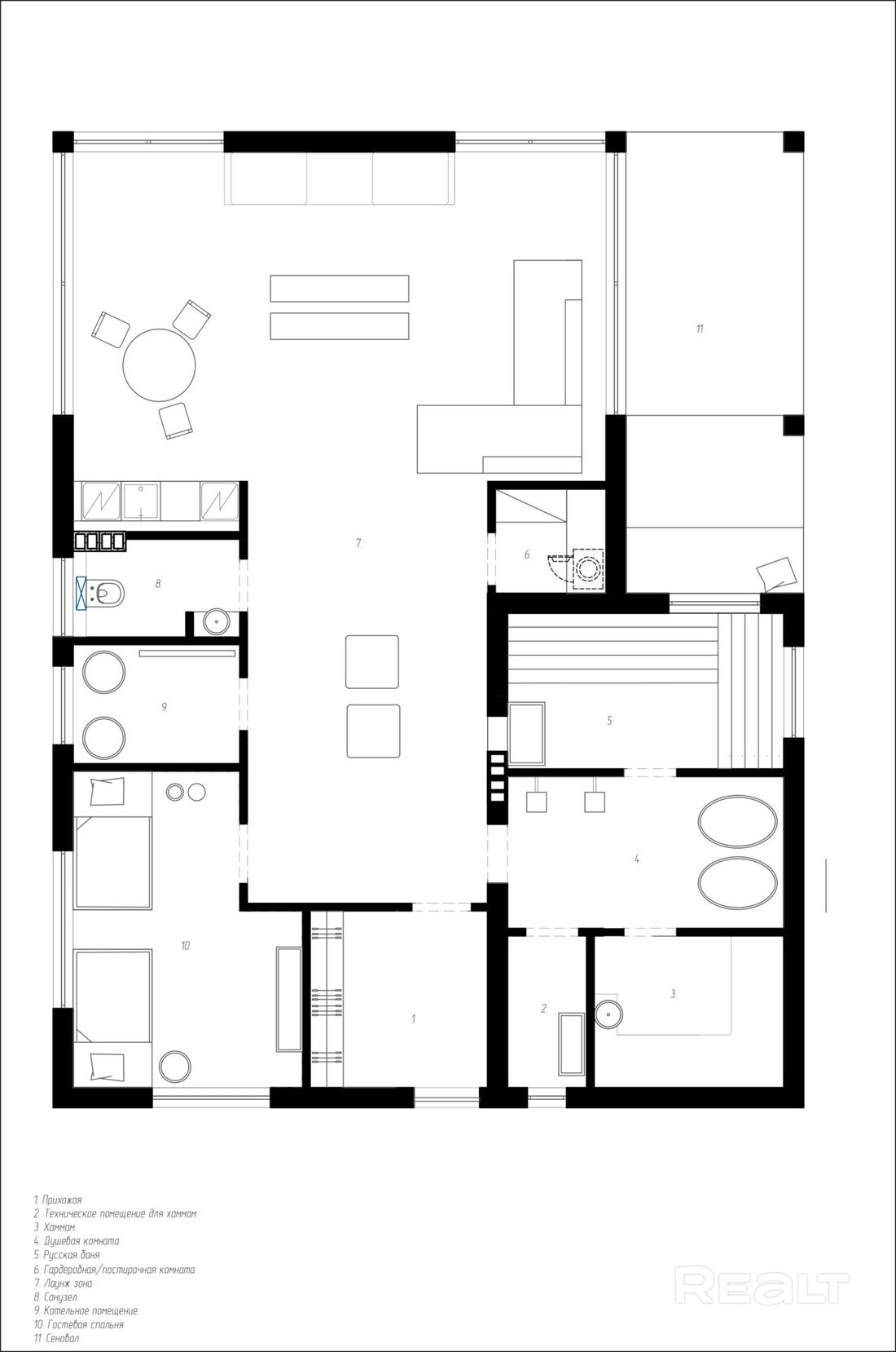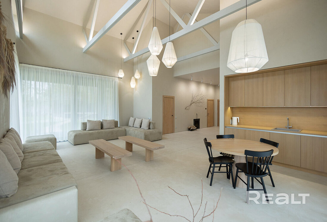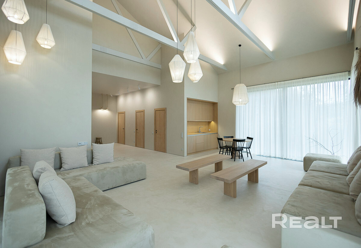 Опенспейс украшают изделий современных белорусских мастеров, традиционные предметы быта из дерева, лозы и керамики. Комнаты обставлены уникальной мебелью. Например, имеются датские стулья дизайна Ханса Вегнера, Сarl Hansen & Son, приставные столики-пеньки Gervasoni. А за столярные изделия, обеденный стол и лавки из дуба отвечала дизайнер Лена Коваленко. Мягкая мебель изготовлена местной мастерской Studio Furniture.