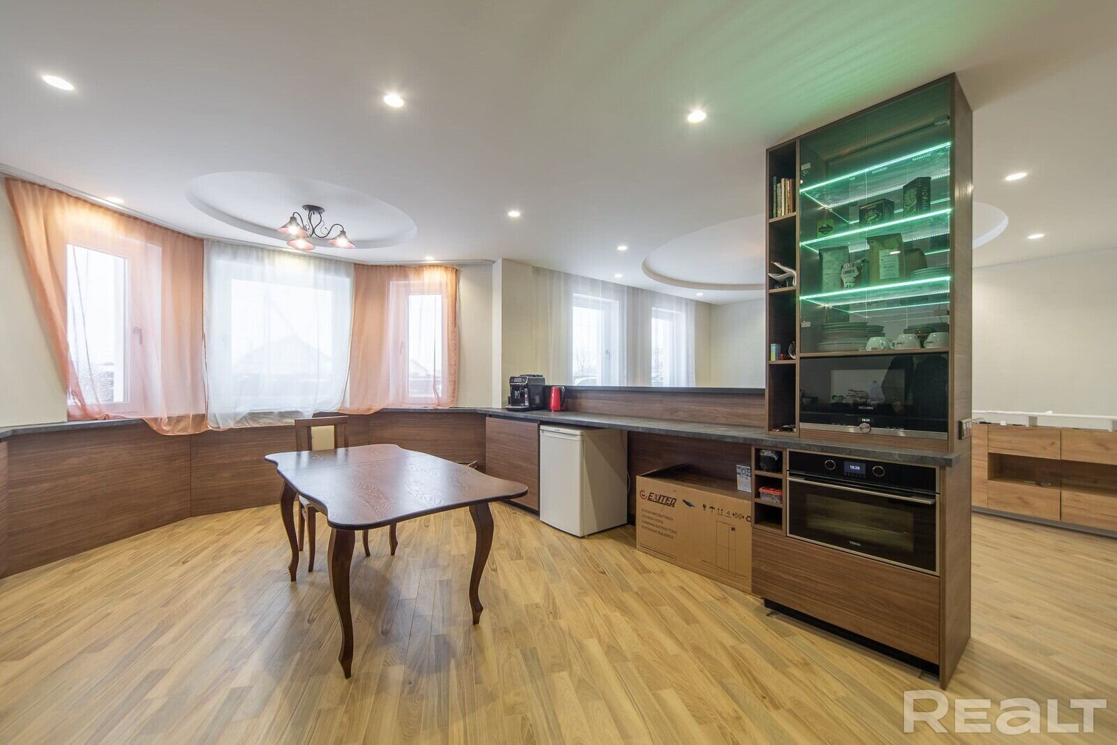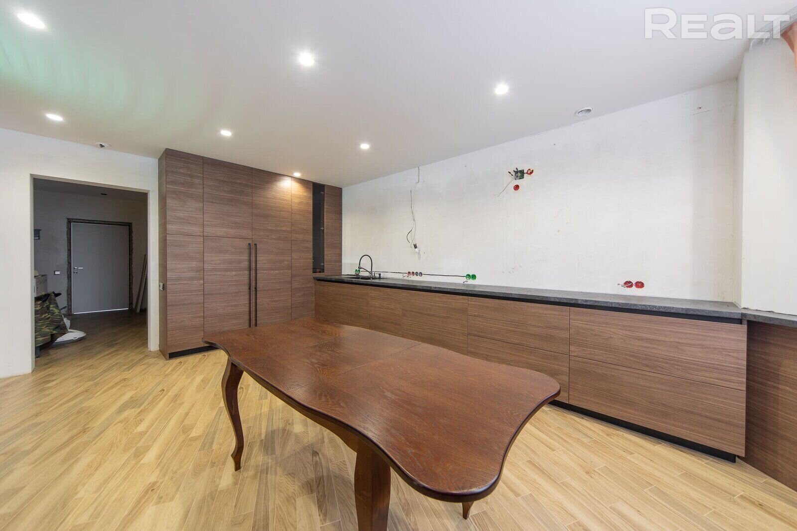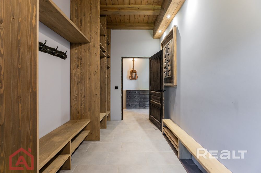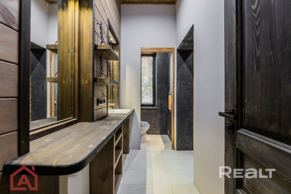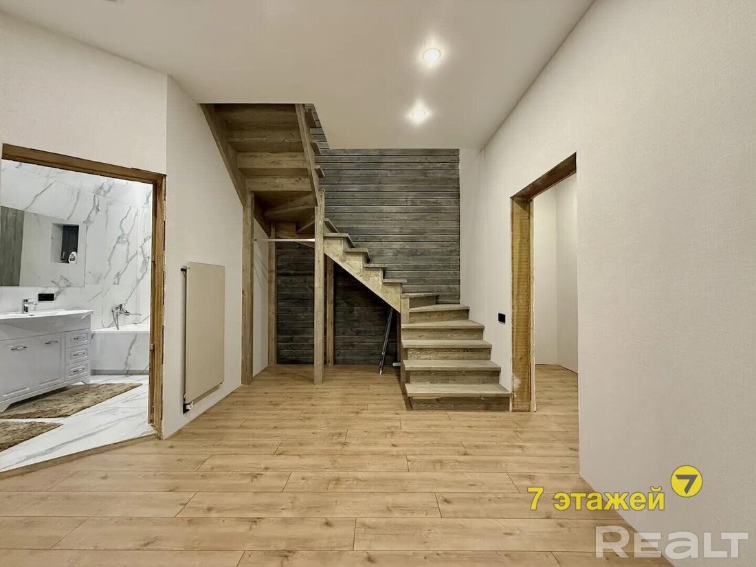 Общая площадь — 235,1 м2. Подойдет для большой семьи — внутри есть гостиная, кухня, два санузла, 4 спальни, топочная.