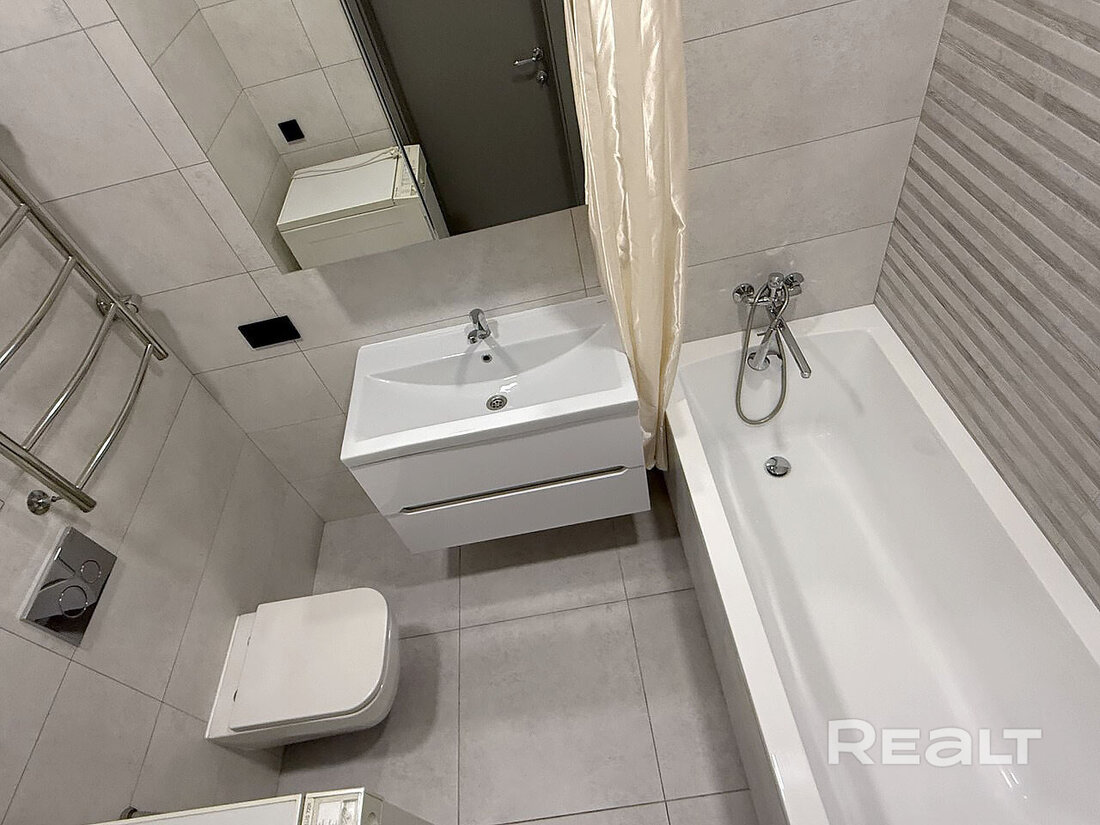 В санузле есть ванная и стиральная машина. Здесь, а также в кухне, установлены датчики протечки воды. Для поддержания комфортной температуры в студии имеется кондиционер.