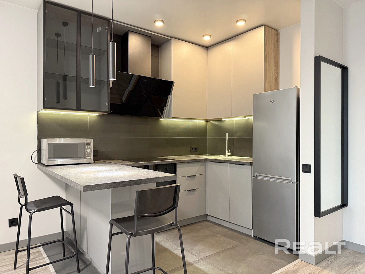 Сегодня мы решили посмотреть минимальные цены на готовые квартиры в жилом комплексе «Парк Челюскинцев», что расположен в районе проспекта Независимости и улицы Макаёнка. Подчеркнем, что нас интересует исключительно жилье с ремонтом. В этот раз самым недорогим вариантом оказалась просторная студия с неброским, но стильным интерьером. Отметим, что за год подобные квартиры подорожали на 15−20 тысяч долларов.