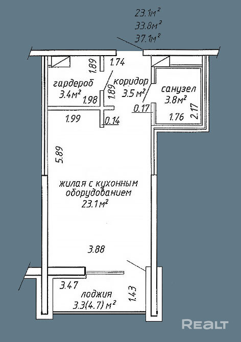 Планировка квартиры разделена на зону кухни и спальни-гостиной.