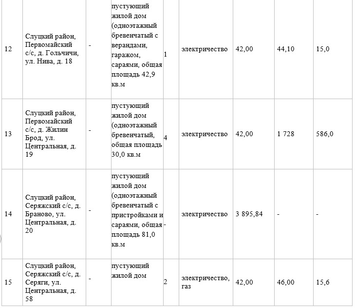 Отметим, что большого интереса у потенциальных покупателей дома не вызвали. Во-первых, они не имеют кадастровых номеров, кроме одного в Слуцком районе. Во-вторых, не определена площадь земельных участков, опять-таки кроме одного в том же Слуцком районе. В-третьих, большинство домов оснащены только электричеством. В итоге начальная цена почти на все на лоты составила 42 рубля. Что касается заявок, то они поступили на 10 домов, однако торги прошли по 7 лотам. На 3 дома подали по одной заявке. На 6 лотов заявлений не поступило.