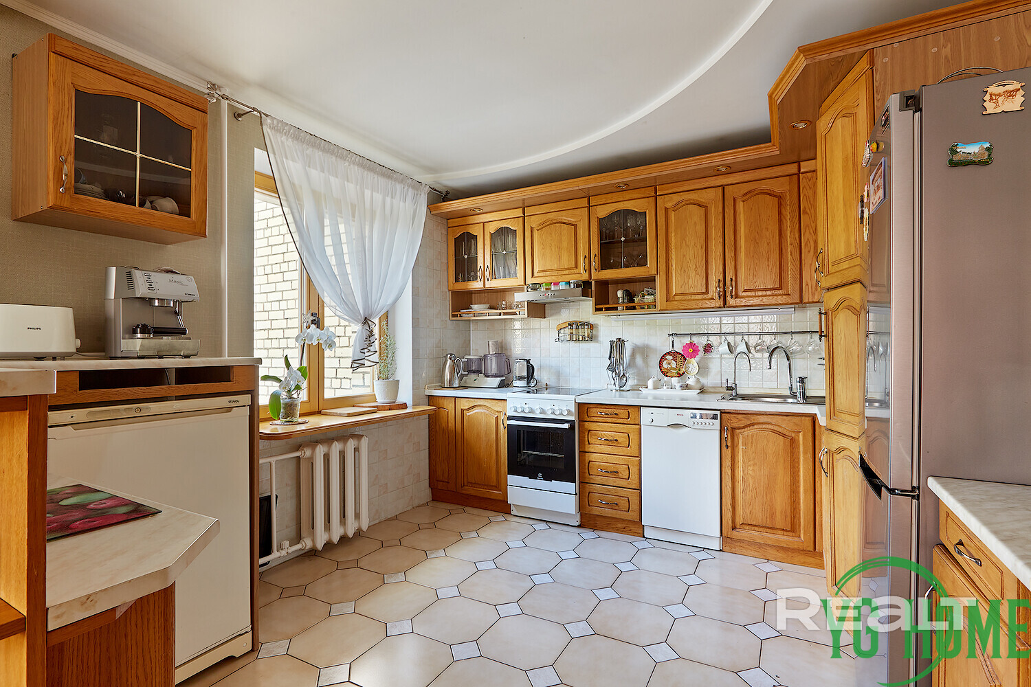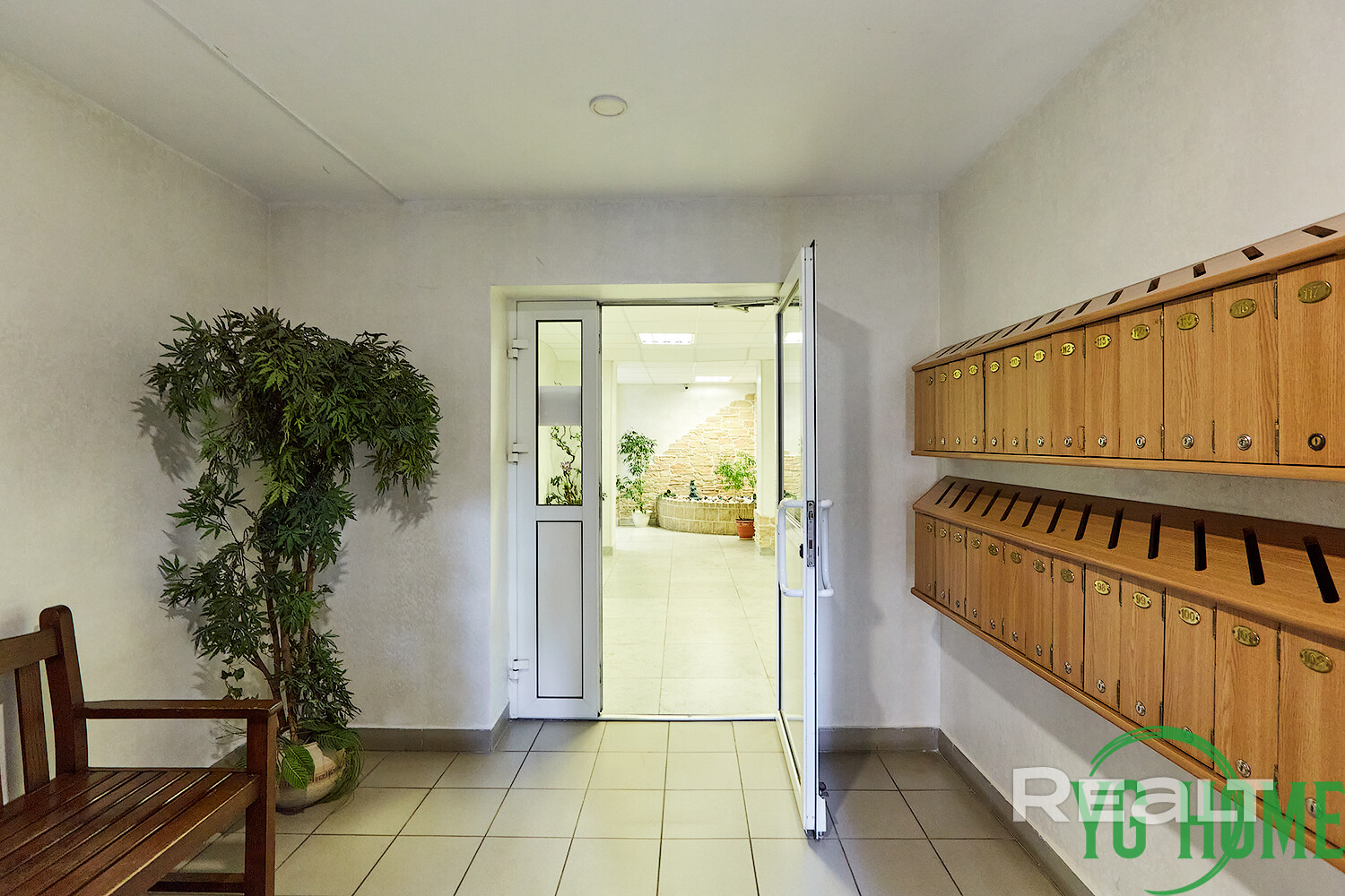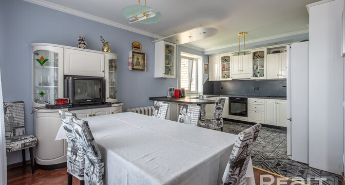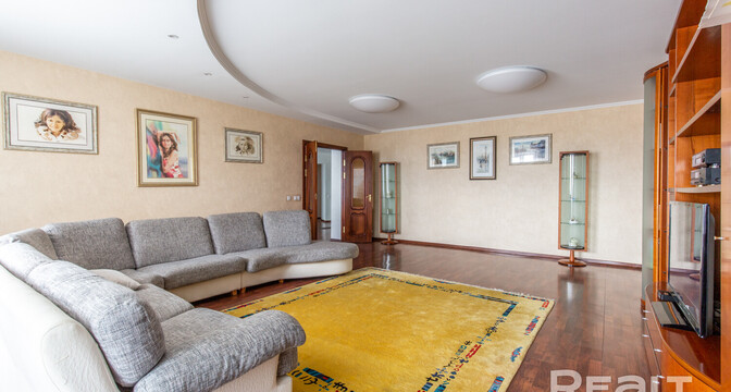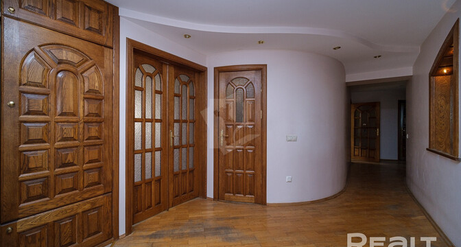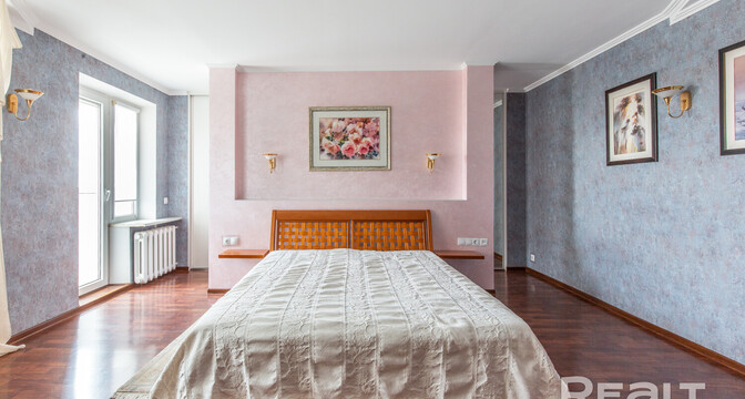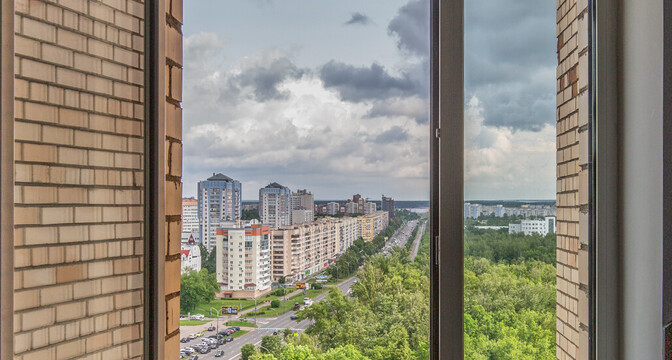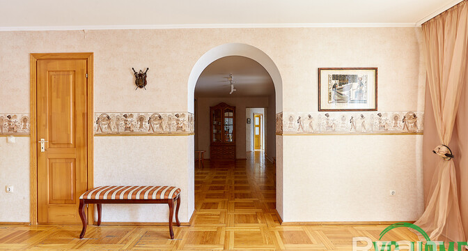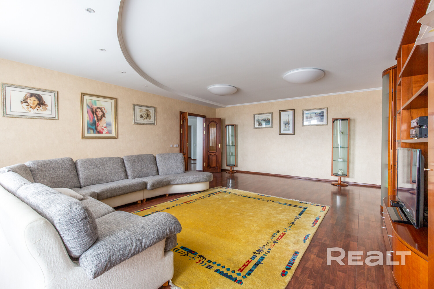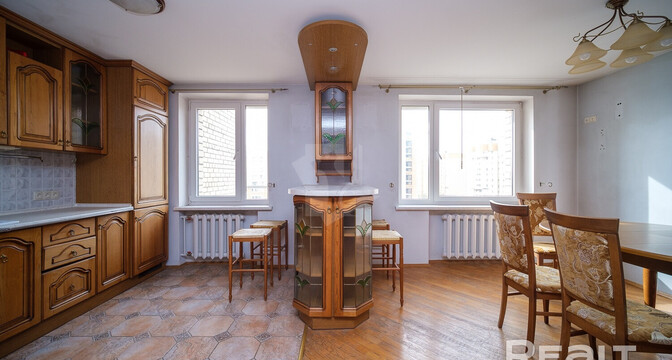 Есть в продаже еще одна четырехкомнатная квартира, причем — без соседей на этаже. Это жилье расположено на 17-м этаже и насчитывает 147 квадратных метров площади. Планировка квартиры состоит из кухни-гостиной, двух больших комнат, двух санузлов и прихожей. Окна четырешки выходят сразу на 3 стороны. Всего в квартире — 2 лоджии и 2 балкона. Внутри сделан ремонт. В комнатах на полу — ламинат, на стенах — итальянские обои, краска или венецианская штукатурка, в санузлах — плитка. В каждом санузле есть ванна и унитаз, а в одном установлена и душевая кабина. Продается квартира за 260 тысяч долларов (1768 долларов — за метр).