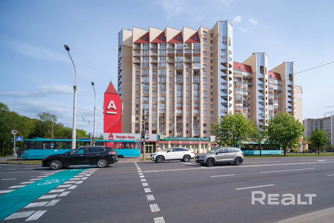 Этот дом когда-то был главной достопримечательностью Логойского тракта. Эффектную многоэтажку с башней и балконами-зубчиками возвели в конце 90-х годов, а обживался он уже в начале 2000-х. Начинка элитного здания была по тем временам впечатляющей — тут и подземный паркинг, и уютные подъезды (сейчас их назвали бы лобби) с консьержами, и большие квартиры с необычными планировками. Кстати, несколько квартир в доме сейчас продается. Мы вспомнили историю высотного дома и посмотрели, почем тут предлагают жилье.