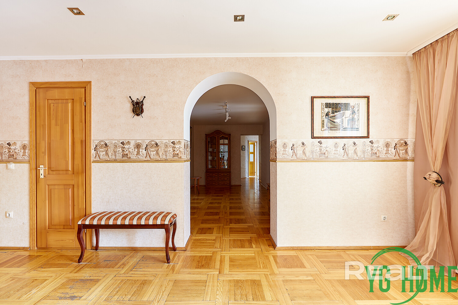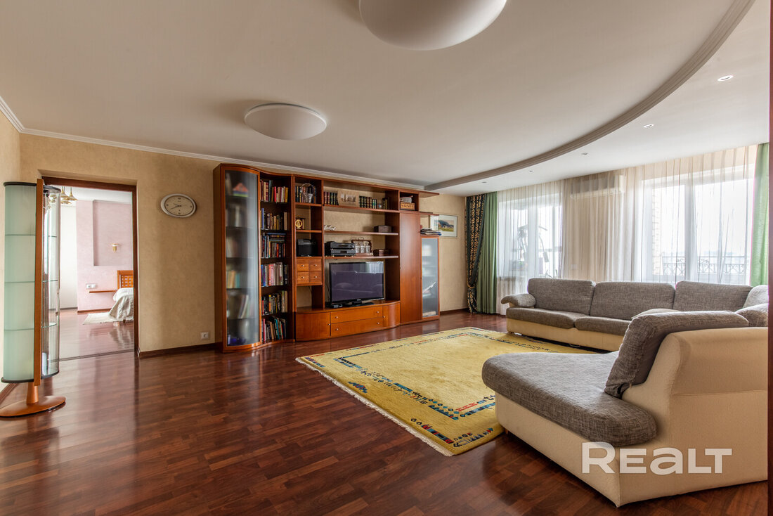 Самое высокое по цене предложение — пятикомнатная квартира на 4-м этаже. Площадь этого жилья составляет 162 квадрата. Планировка подойдет для большой семьи — гостиная (25 квадратов), кухня (19 квадратов) с удобной рабочей зоной и большим столом, 4 спальни (11, 11, 21 и 24 квадрата), 2 санузла, прихожая и коридор. Отмечается, что все комнаты имеют лоджии. Квартира полностью укомплектована мебелью и бытовой техникой. Кухня и мебель изготовлена из массива дуба, организовано много мест для хранения. Стоимость квартиры — 300 тысяч долларов (1850 долларов — за метр).