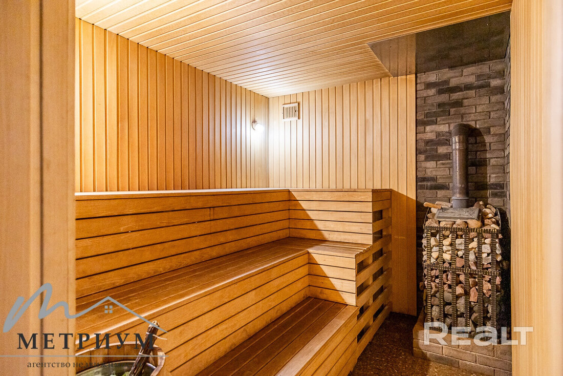 Есть на базе и банный комплекс, который вмещает в себя парилку, комнату отдыха с камином, раздевалку, душевую зону. Изюминкой данного места является купель на открытом воздухе. Горячая купель-джакузи дополнительно оснащена хромотерапией. Также имеются все необходимые банные принадлежности: простыни, полотенца, тапочки, аромамасла, веники.