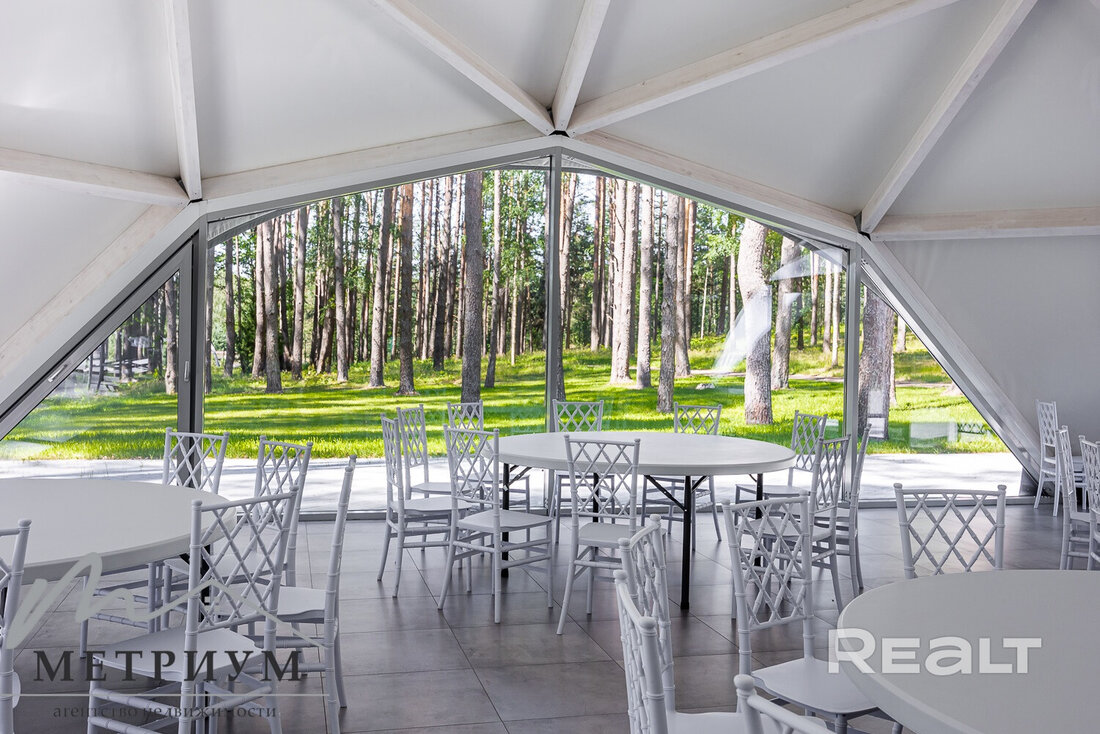 Также в загородном комплексе есть возможность провести масштабное мероприятие в новом шатре, который вмещает в себя до 200 гостей и подходит для свадьбы, корпоратива, юбилея, любого выездного банкета, поскольку в нем установлена большая профессиональная кухня. Подчеркивается, что в шатре комфортно в любую погоду, так как помещение отапливается и оборудовано санузлами. В наличии — посуда на 200 гостей, 3 кондиционера, огромный экран, профессиональное музыкальное оборудование.