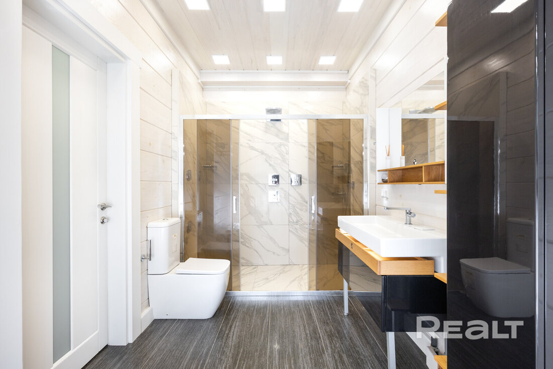 В доме построили два санузла: один идет с душем, второй — с ванной.