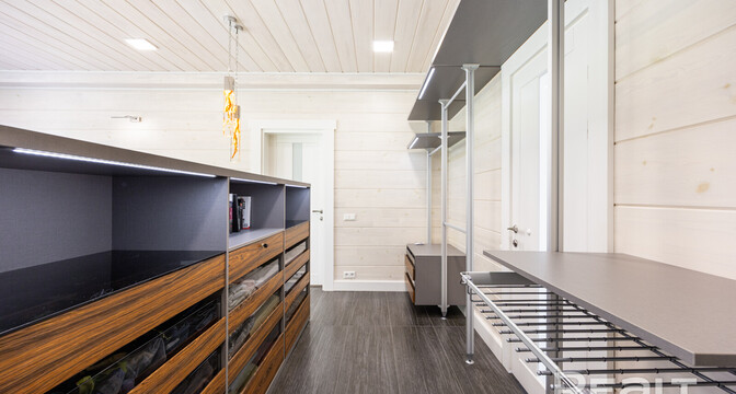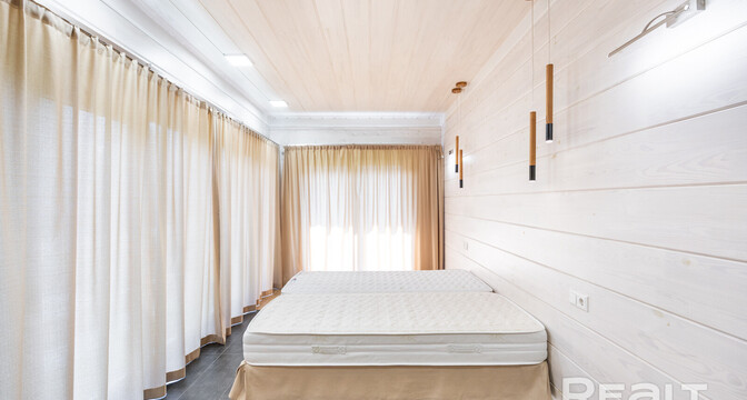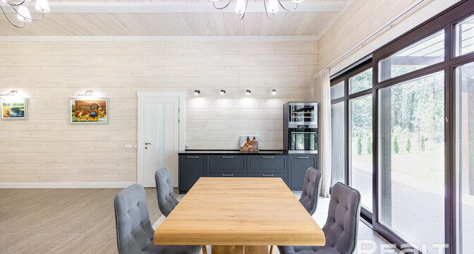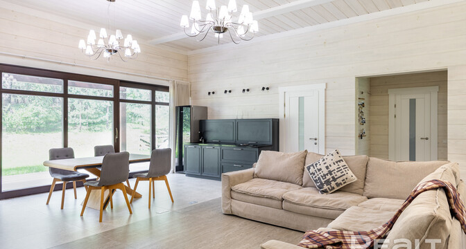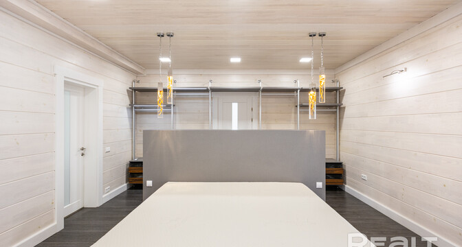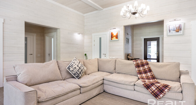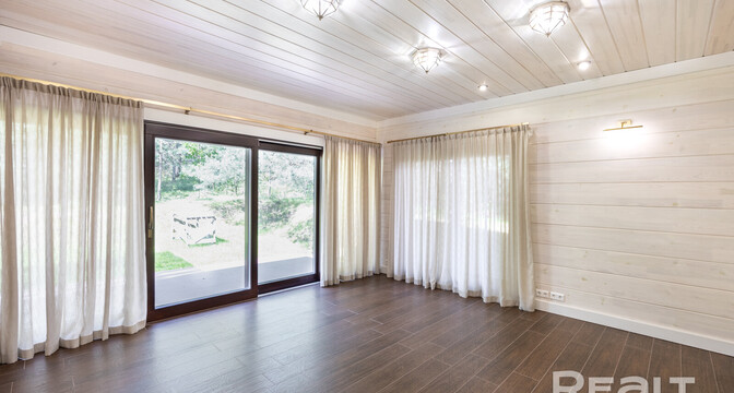 Одноэтажный дом в Колодищах построили в 2018 году из клееного бруса сосны 240×262 мм с пропиткой lmprogniergtund. Его площадь — 200,8 м². Постоянно здесь никто не жил.