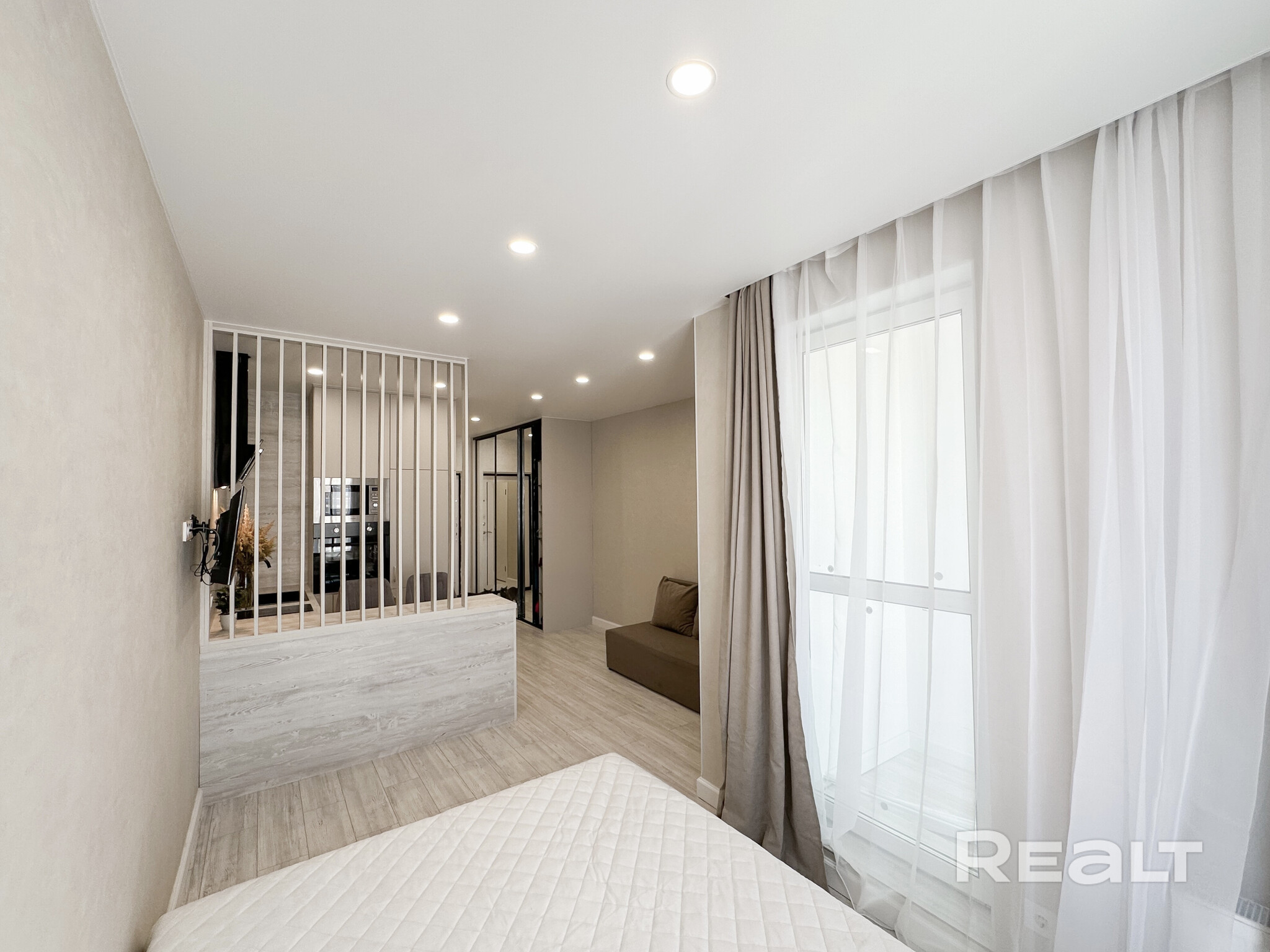 Эта однушка — из новостройки 2020 года по адресу Дроздовича, 6. Недалеко от дома — Лошицкий парк.