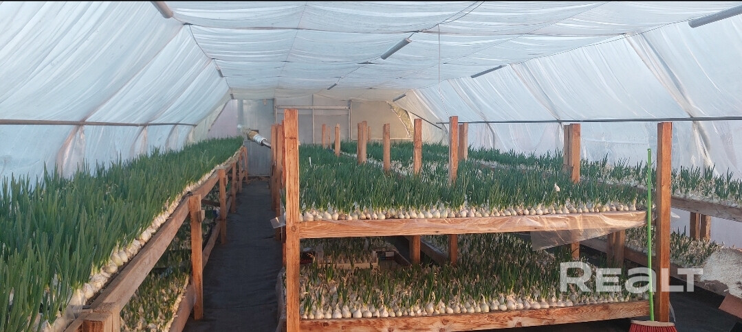 Есть тут и большая отапливаемая теплица (6×20) со стеллажами под выращивание овощей и зелени, даже в зимний период.