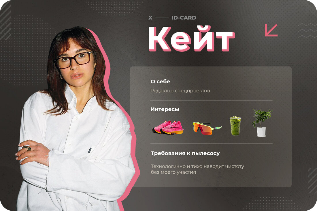 — Я — типичный зуммер с плотным графиком и вечной нехваткой времени. Пока что ни детей, ни кота, зато куча дел и стойкое желание, чтобы в доме было чисто без моих усилий. Раз в неделю я убираюсь, но без особого удовольствия. После моих специфических хобби — спорт, растениеводство и ведения гастроблога — квартира требует особого подхода. Уверена, что техника должна не просто помогать, а брать все на себя: нажал и ушел по делам. Но когда вернулся, вокруг чистота и порядок.