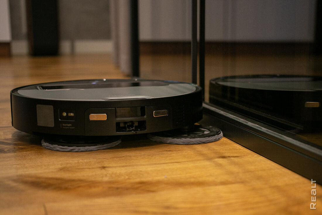 Кстати, в комплекте не было моющего средства, поэтому все тесты влажной уборки проходили на чистой воде. Это чуть ограничивает возможности, но дает чистое понимание, как робот справляется сам, без помощи химии.