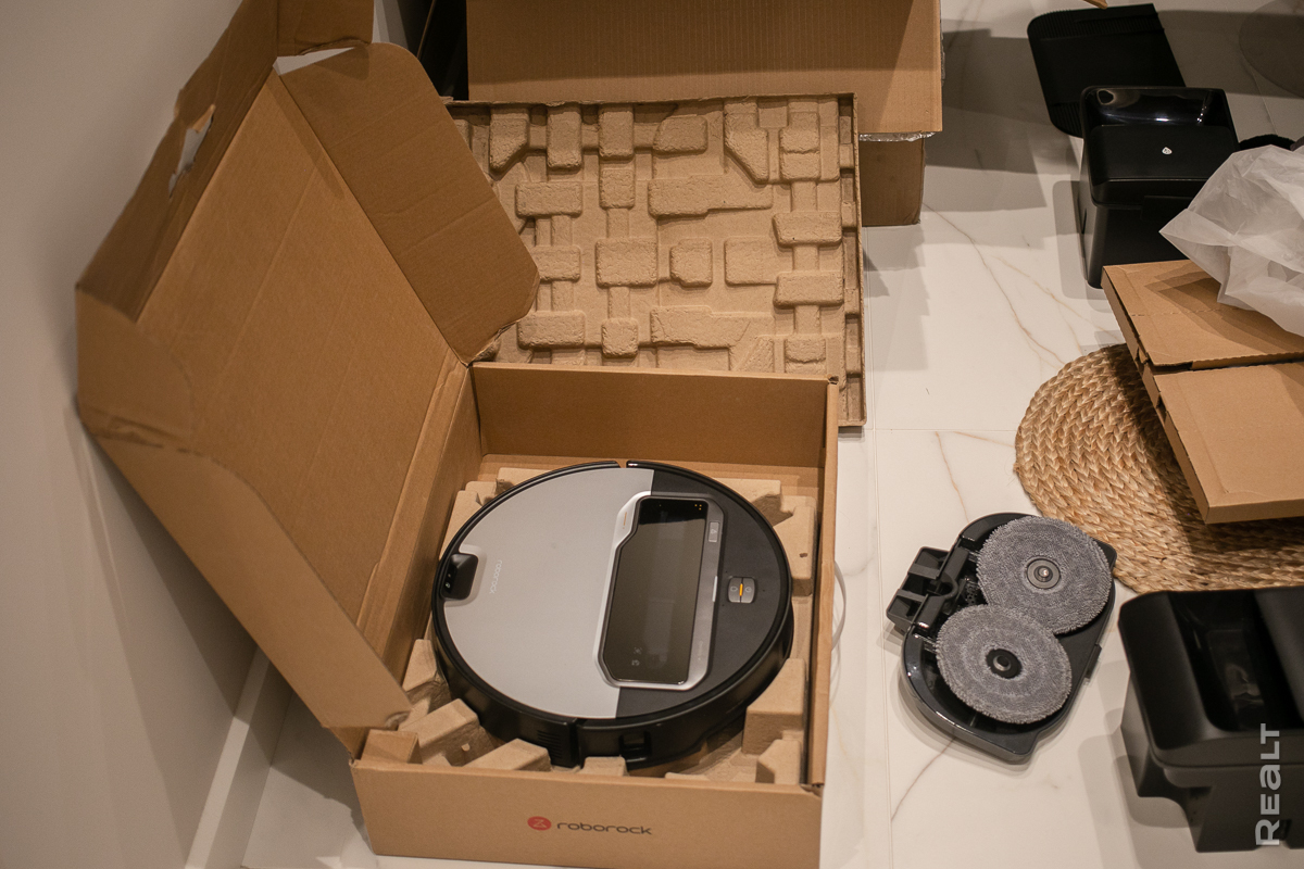 — Через пять минут после распаковки я уже установила док-станцию, набрала воду в контейнер, и пока робот-пылесос заряжался, можно было спокойно рассмотреть его конструкцию. Первое впечатление решает очень многое.