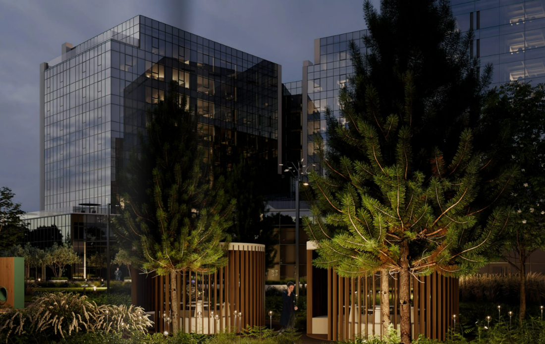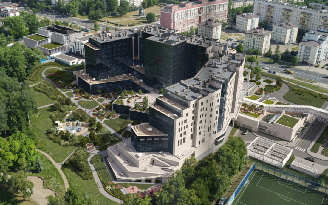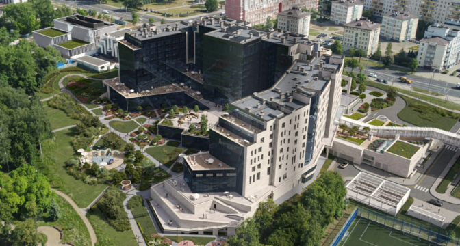 Гуляя вокруг комплекса не можем не подчеркнуть его удобное расположение — тихое место, вид на Парк Победы, но при этом — близость к центру, к будущей станции метро и ко всей городской инфраструктуре.