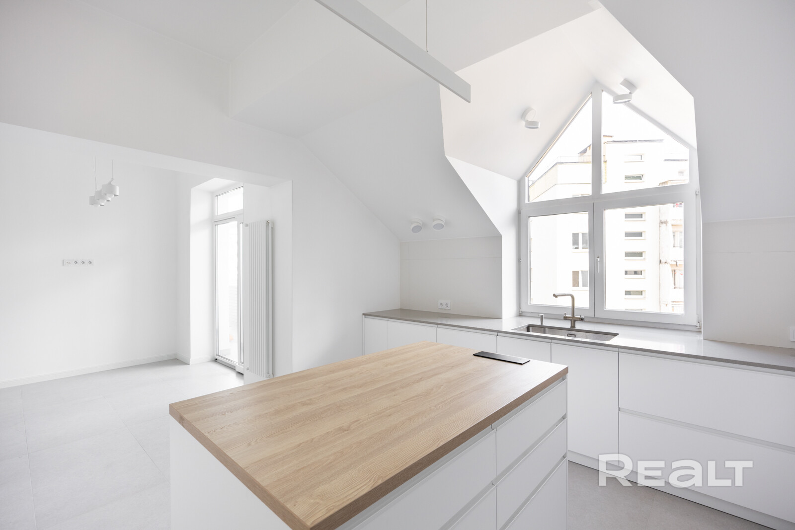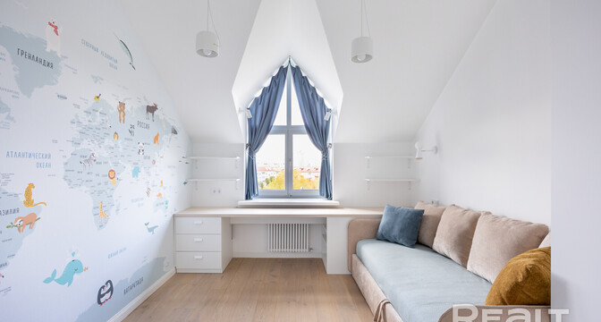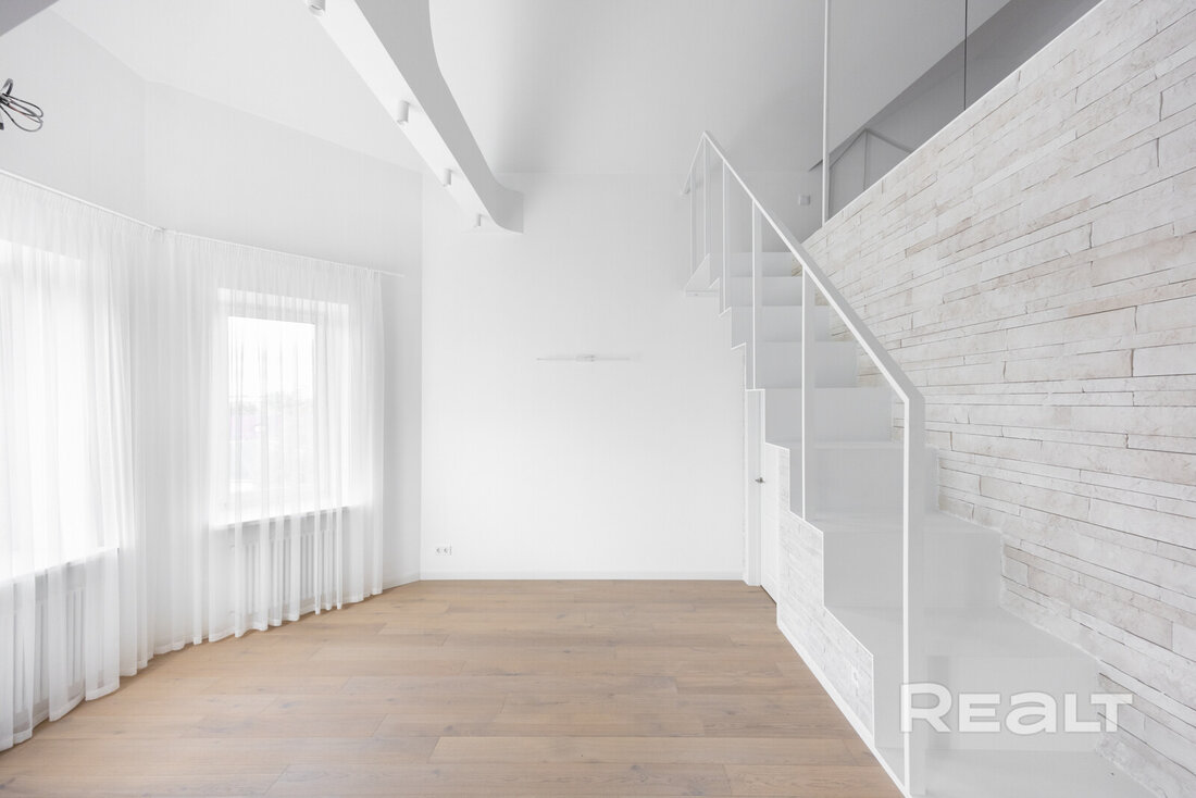 Гостиная со вторым светом и чердак в придачу. Нашли в минском элитном доме большую квартиру с ремонтом