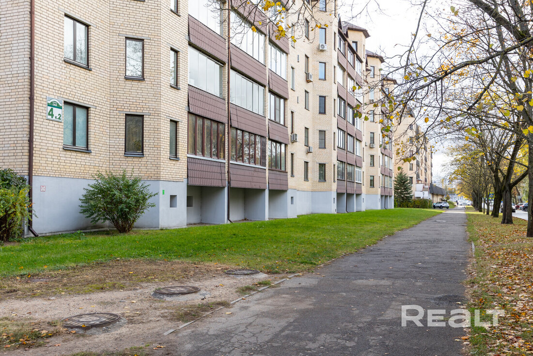 Три дома на улице Гая, 4 (корпуса 1, 2 и 3) возвели по индивидуальным проектам в 1997—2000 годы. Сперва появилась кирпичная девятиэтажка, а рядом позже построили две шестиэтажки. Сейчас во втором корпусе выставили на продажу квартиру на последнем этаже. Ее площадь — 153,7 м².