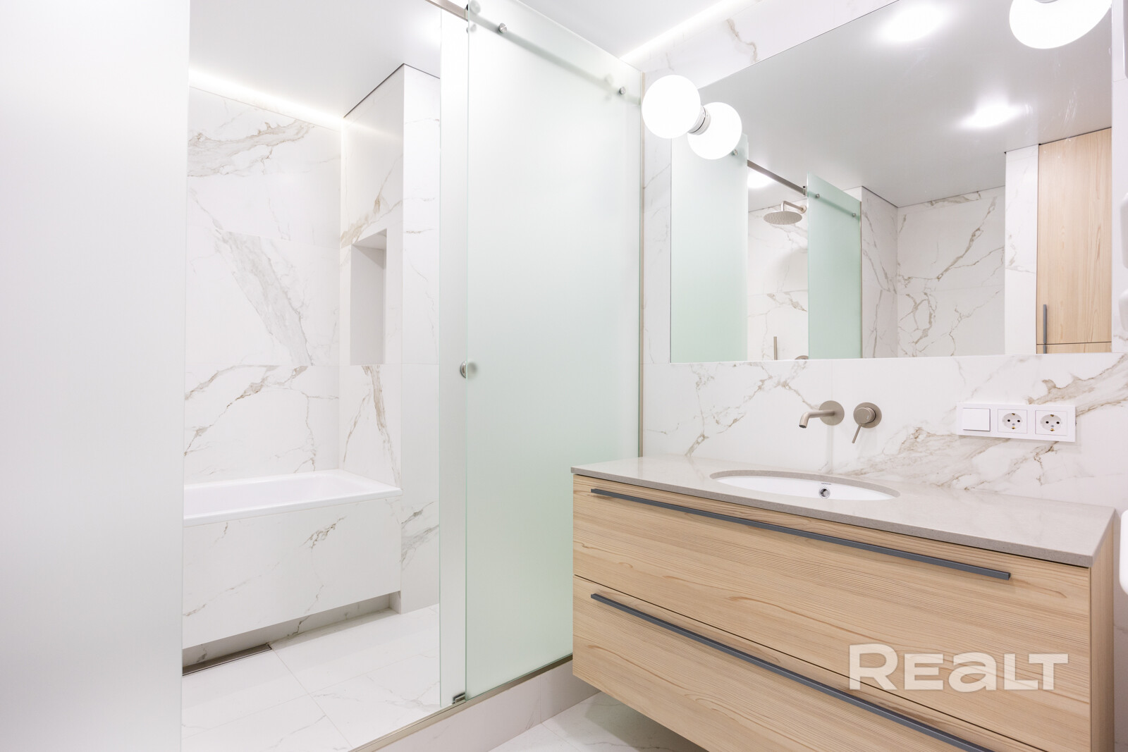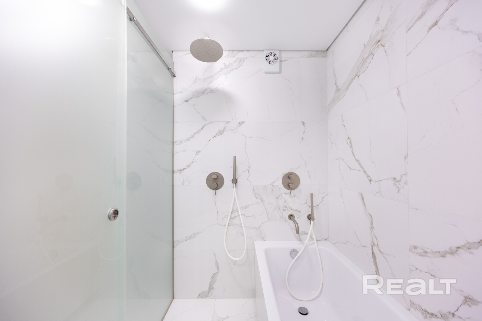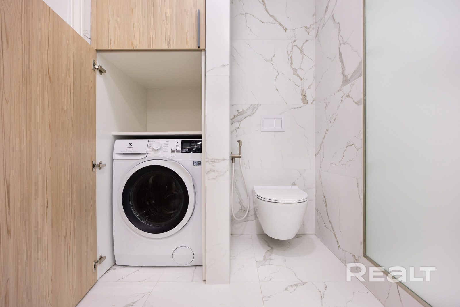 Санузлов здесь тоже два. Один — совмещенный с ванной, душем и стиральной машиной.