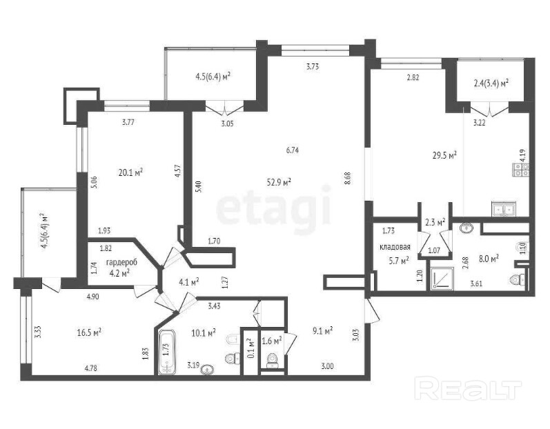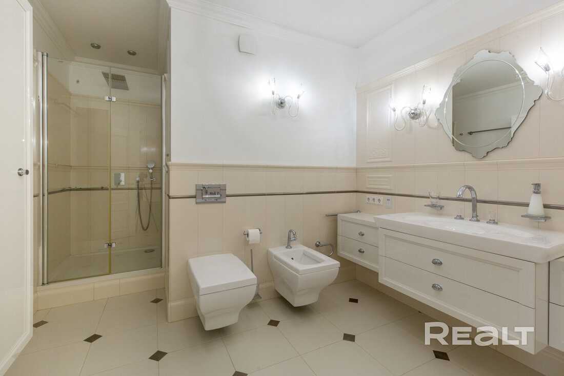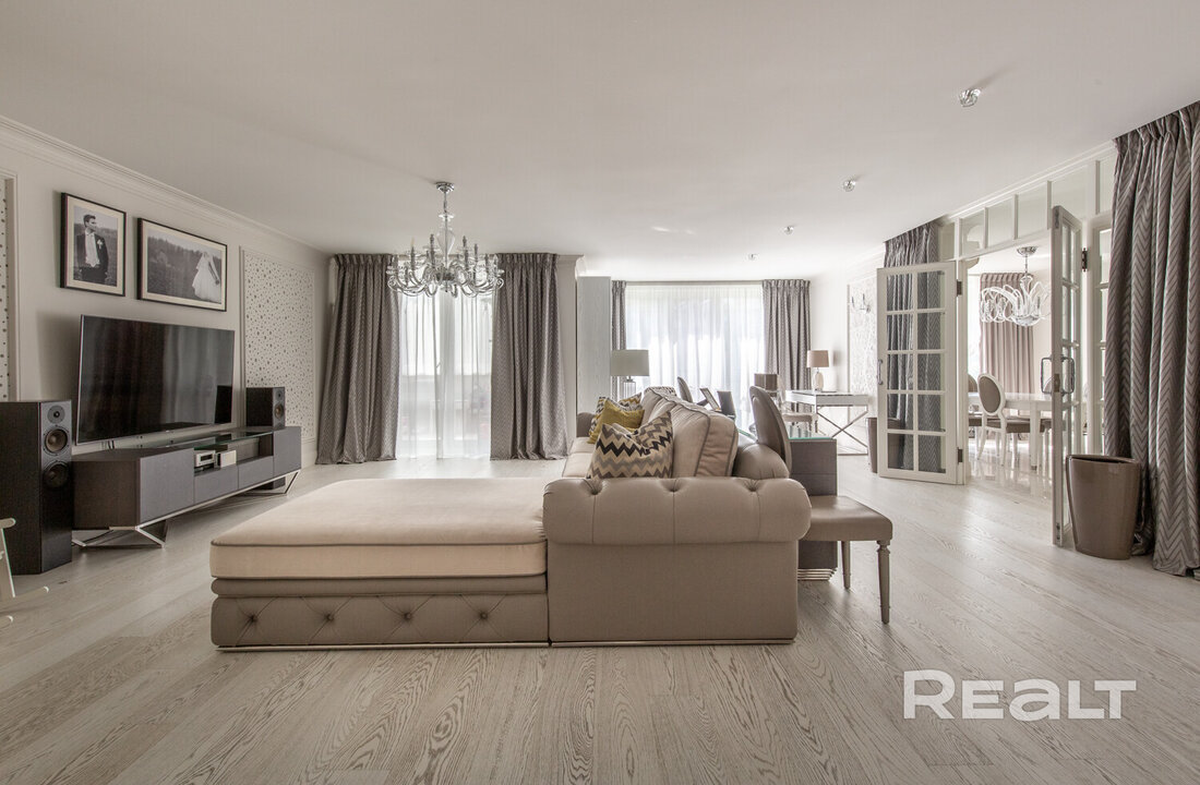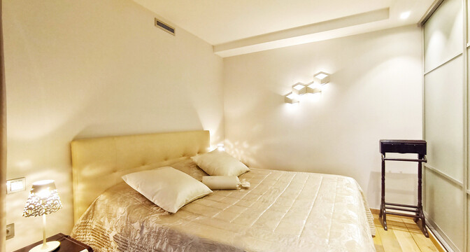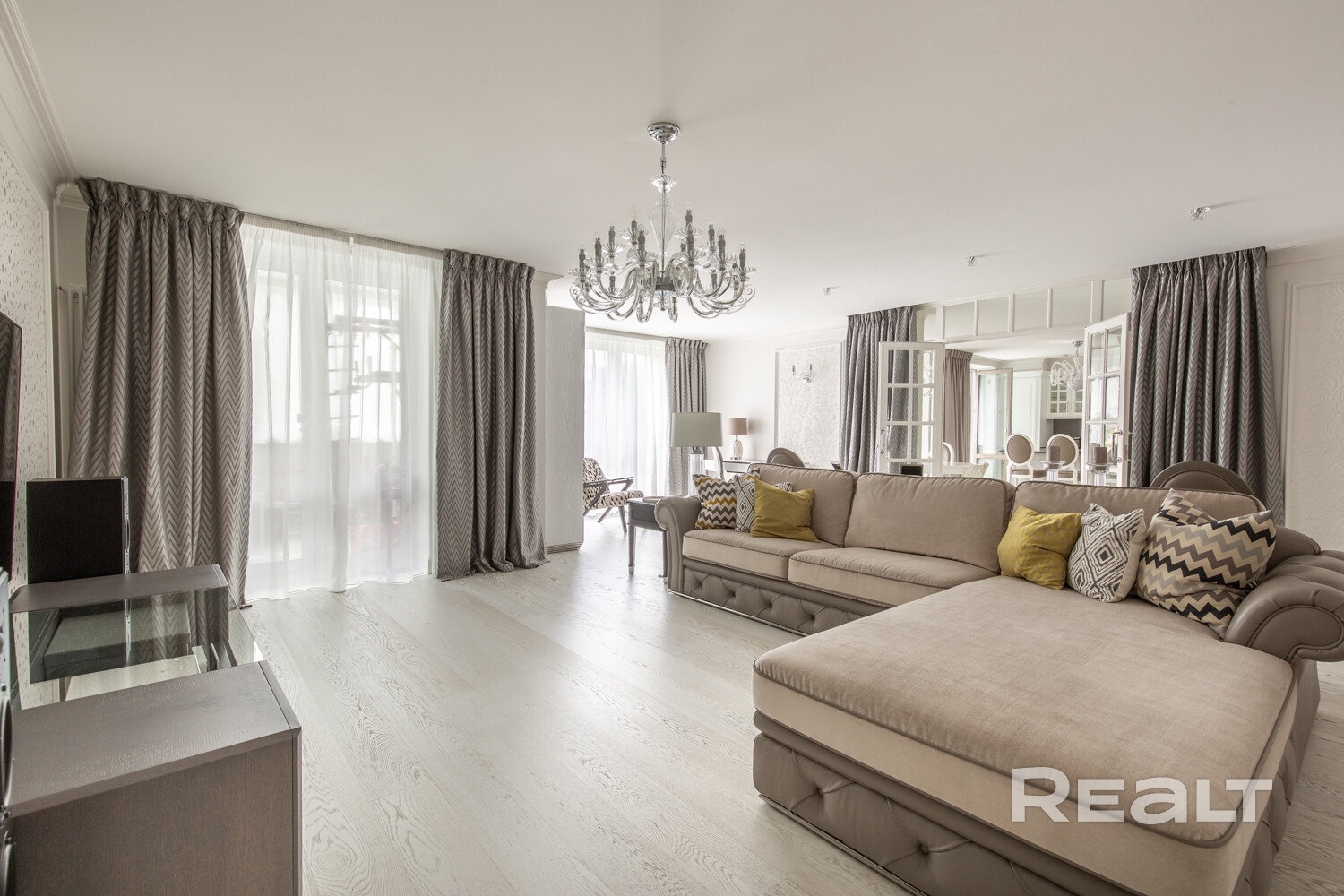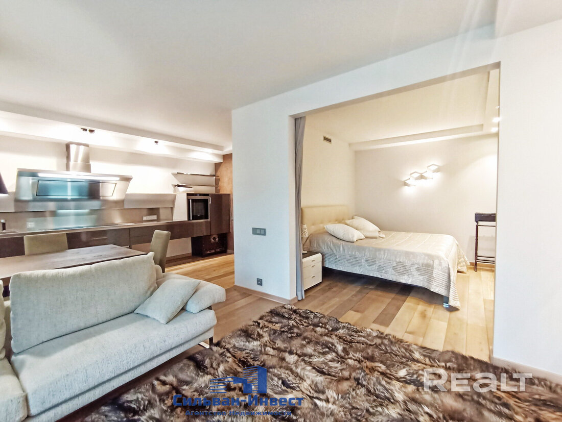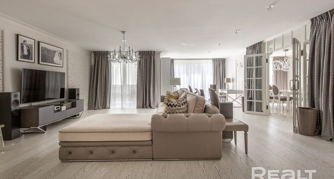 Самый недорогой вариант — квартира «с мужским характером». Общая площадь жилья составляет 55 квадратов. Квартира на первом этаже состоит из кухни-гостиной и отдельной небольшой спальни без окна. В евродвушке выполнен дизайнерский ремонт с использованием импортных материалов. Полы — дубовый паркет, плитка с подогревом. В квартире установлена премиальная бытовая техника — холодильник, морозильник, винный шкаф, варочная панель, стиральная и сушильные машины. Продают квартиру за 190 тысяч долларов (3193 доллара — за метр).
