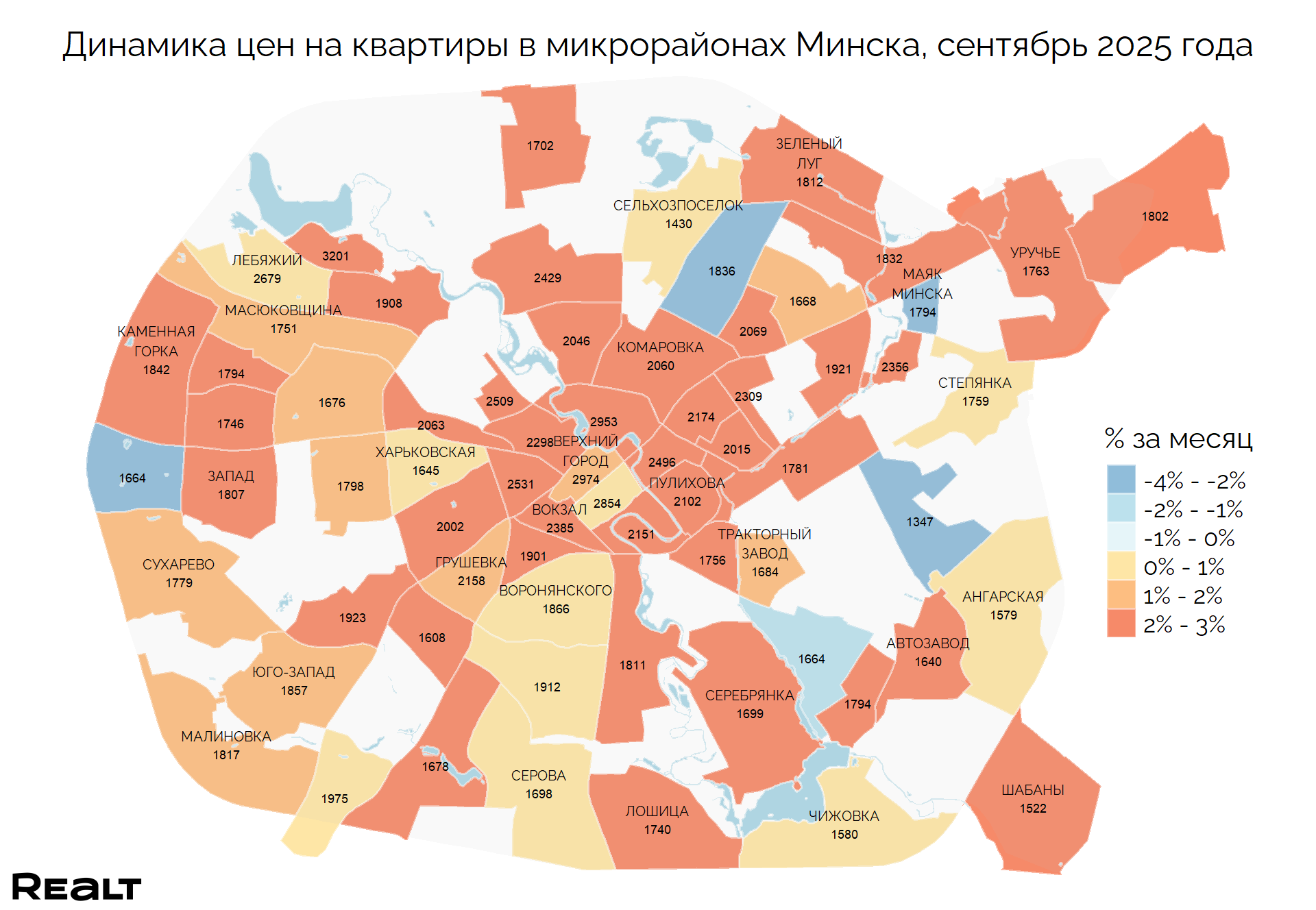 Совокупно за 9 месяцев квартиры в реальных сделках подорожали в среднем на 16% или +250 USD\кв. м. Средняя стоимость проданных квартир выросла за месяц с 91 916 USD до 91 992 USD.