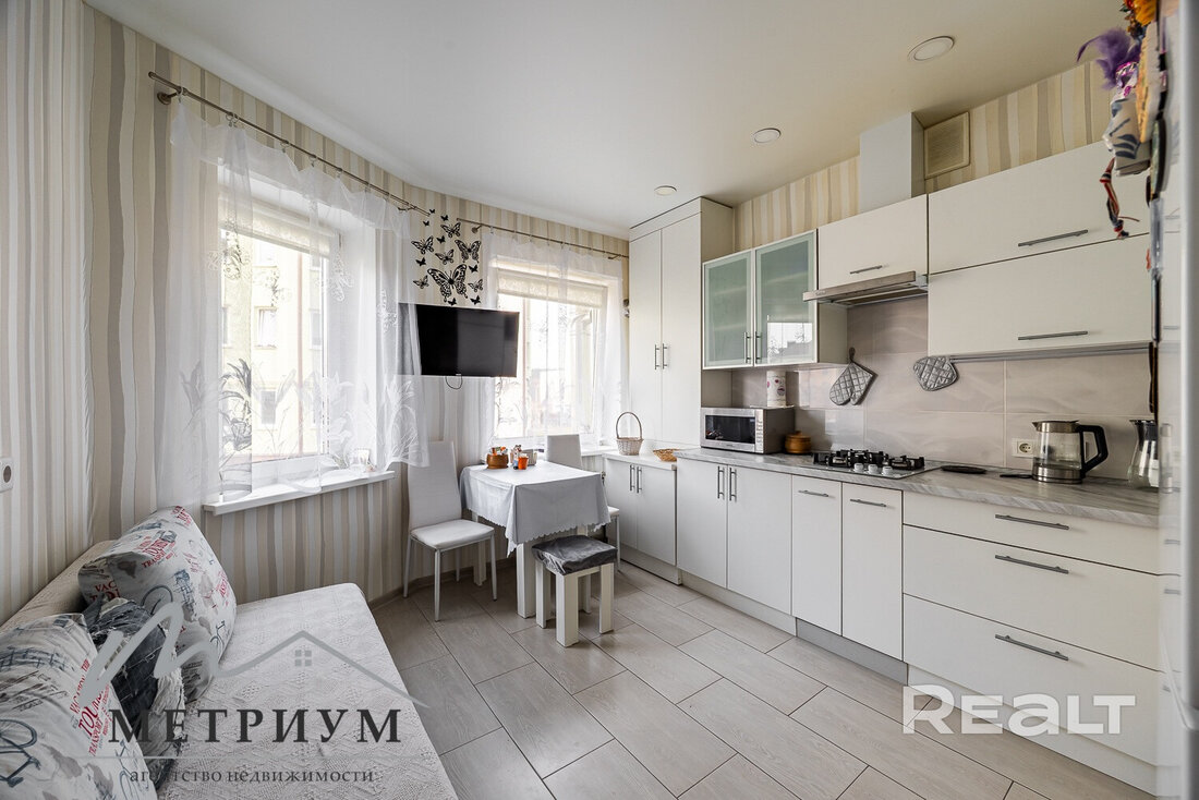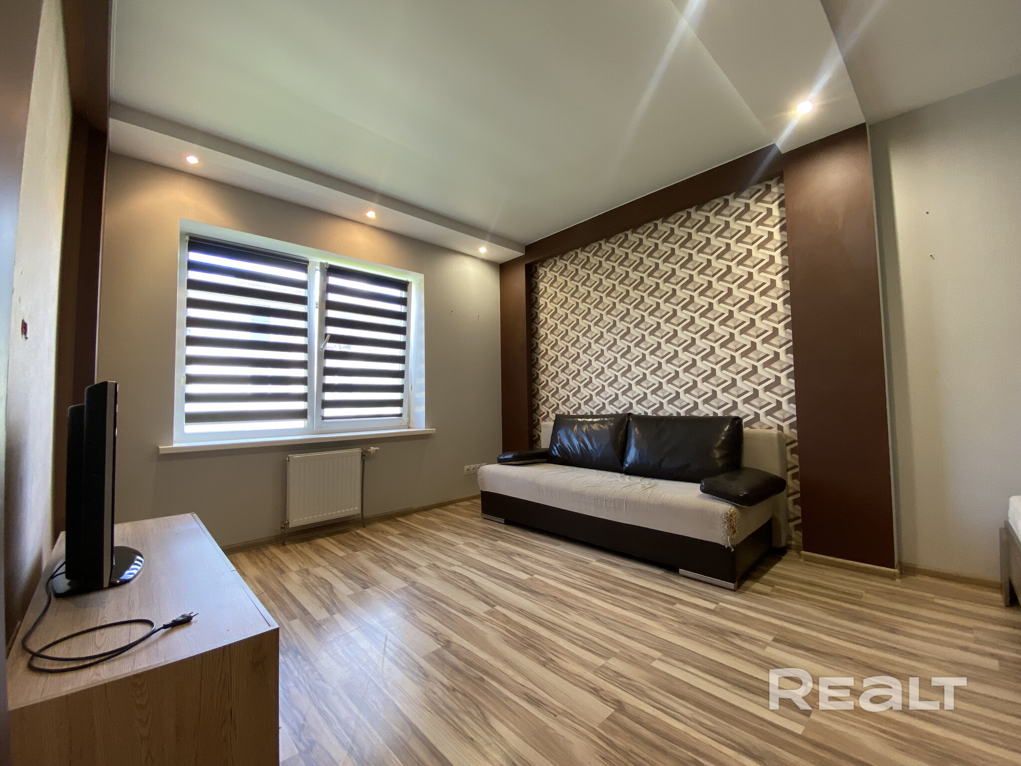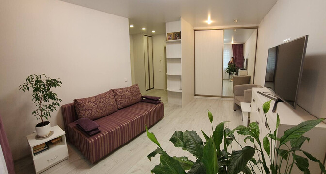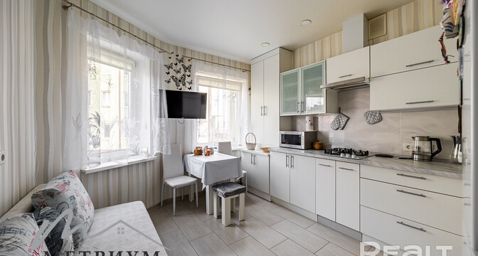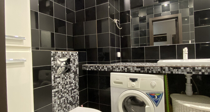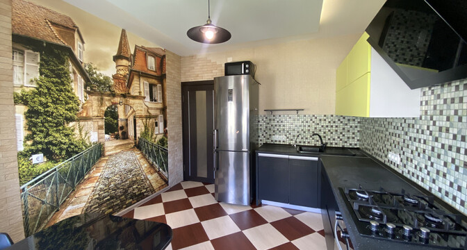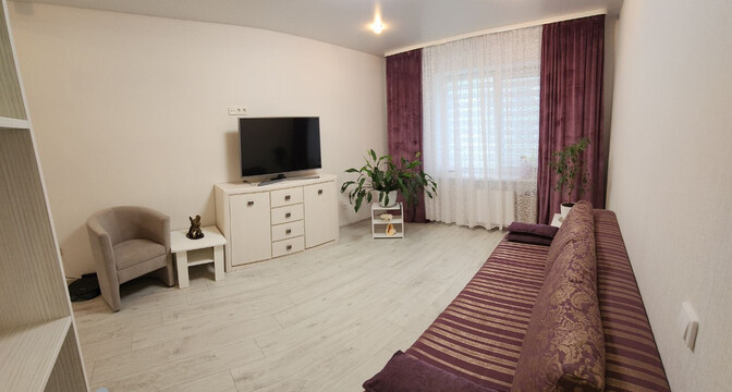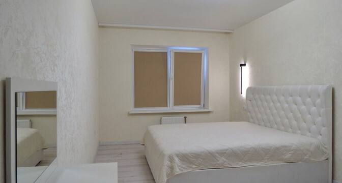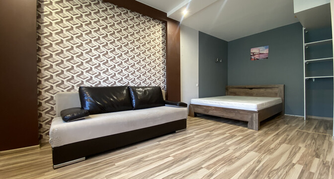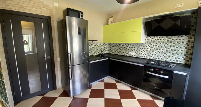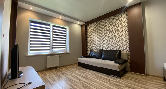 Есть в продаже еще одна однокомнатная квартира. Это жилье расположено на 1-м этаже и насчитывает 38 квадратных метров площади. В квартире — объемная жилая комната 23.3 квадрата и большая кухня 11,5 квадрата, окна выходят во двор. Отделка квартиры выполнена в нейтральных тонах с использованием качественных материалов. На полу уложен ламинат, на кухне — плитка. Кухонный гарнитур с бытовой техникой — варочная газовая панель, духовой шкаф, вытяжка, посудомоечная машина, а также вся мебель в квартире остаются будущим владельцам. Продается квартира за 67,5 тысячи долларов (1735 долларов — за метр).