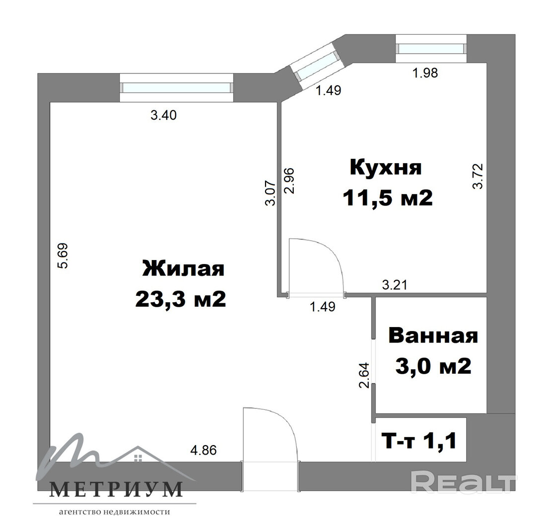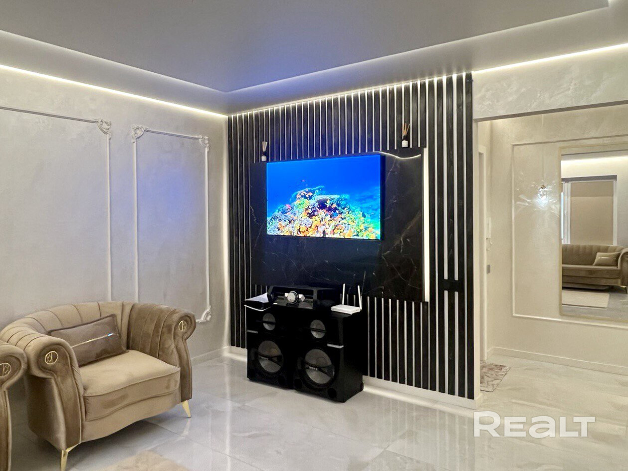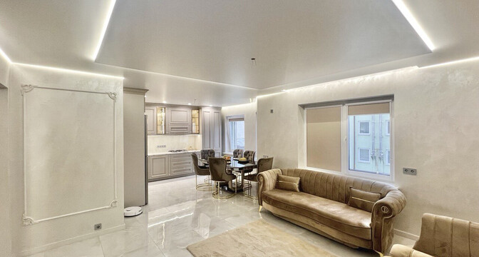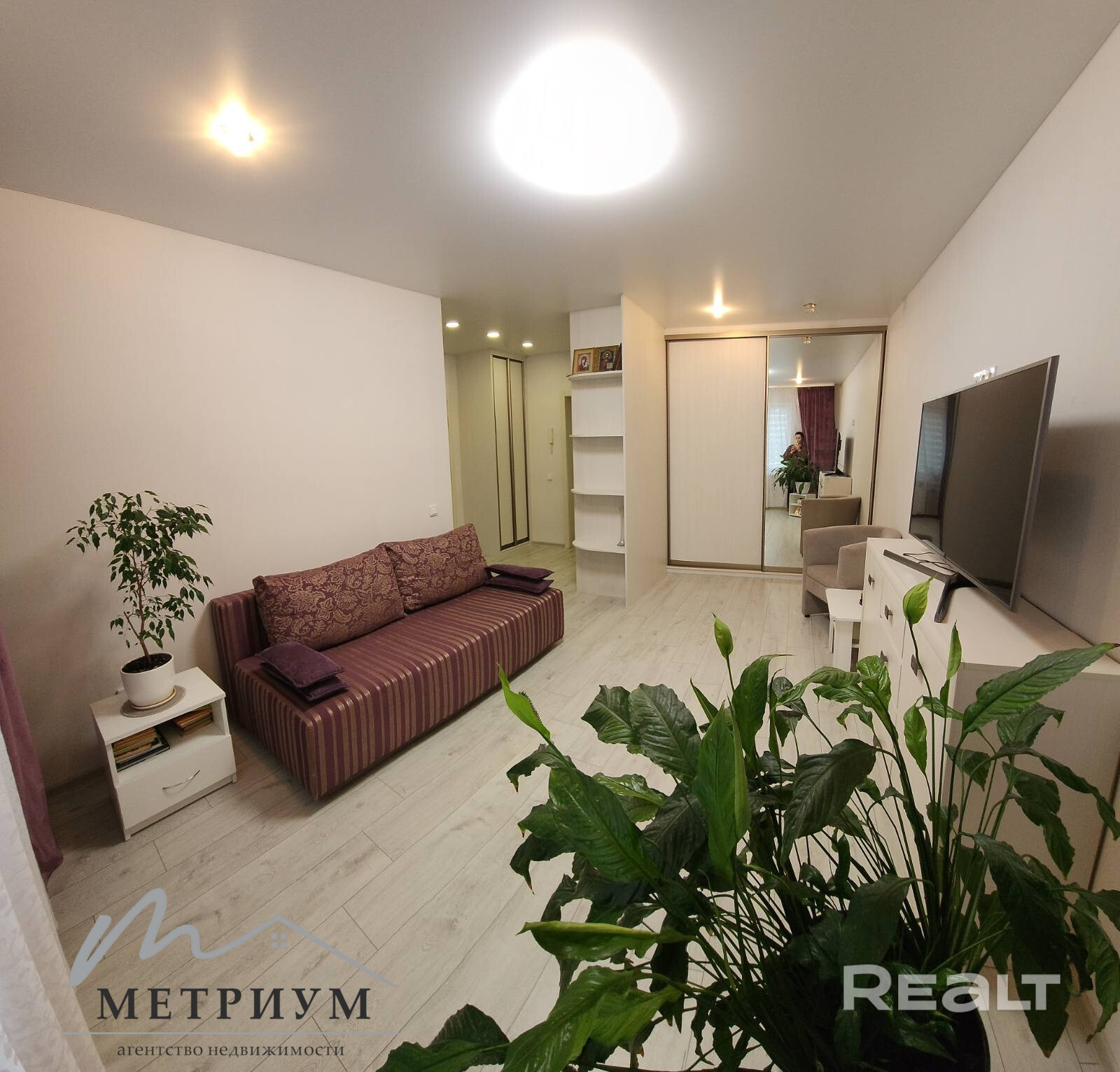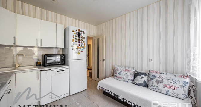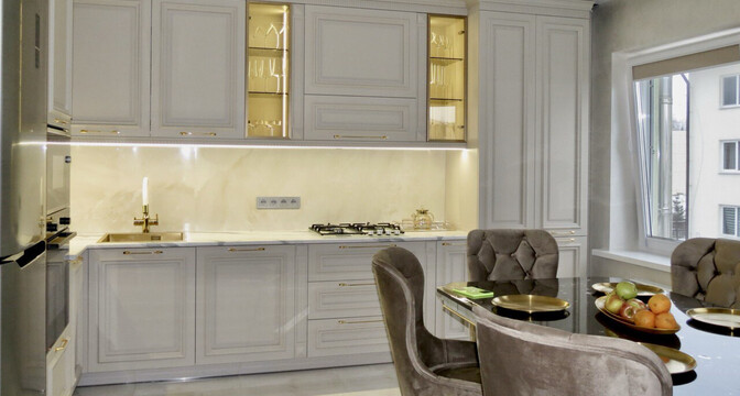 Есть в продаже еще одна однокомнатная квартира. Это жилье расположено на 1-м этаже и насчитывает 38 квадратных метров площади. В квартире — объемная жилая комната 23.3 квадрата и большая кухня 11,5 квадрата, окна выходят во двор. Отделка квартиры выполнена в нейтральных тонах с использованием качественных материалов. На полу уложен ламинат, на кухне — плитка. Кухонный гарнитур с бытовой техникой — варочная газовая панель, духовой шкаф, вытяжка, посудомоечная машина, а также вся мебель в квартире остаются будущим владельцам. Продается квартира за 67,5 тысячи долларов (1735 долларов — за метр).