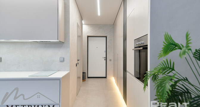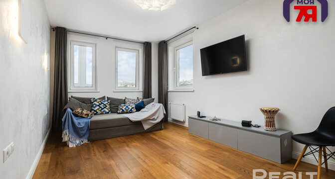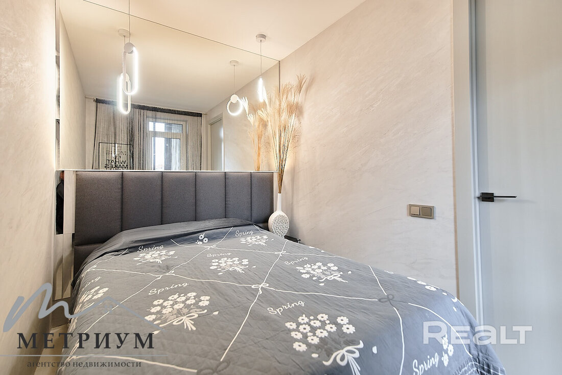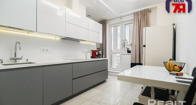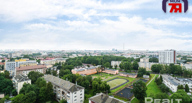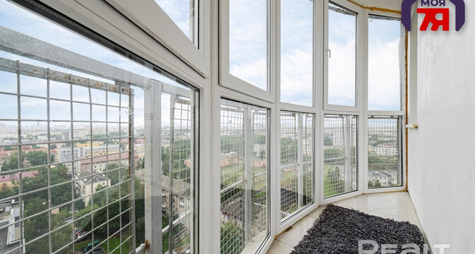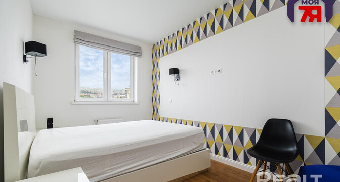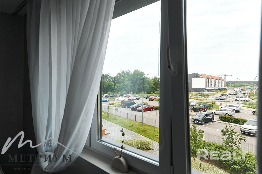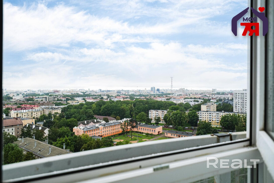 Двухкомнатная квартира на 16-м этаже 19-этажной новостройки по адресу Платонова, 23. Недалеко от дома есть остановки трамваем и автобусов, а до станций метро «Площадь Победы» и «Площадь Якуба Коласа» минут 10−15 пешком.