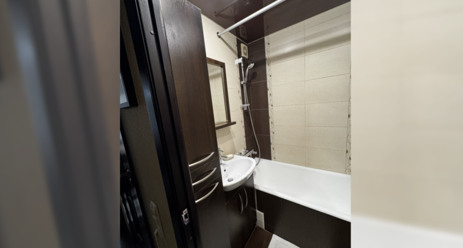 В одной жилой комнате оборудована гостиная, а во второй спальня. Есть помещение, которое можно использовать как гардеробную или кладовую. Санузел раздельный. Установлена ванна. Всю мебель и технику хозяева оставляют покупателям.