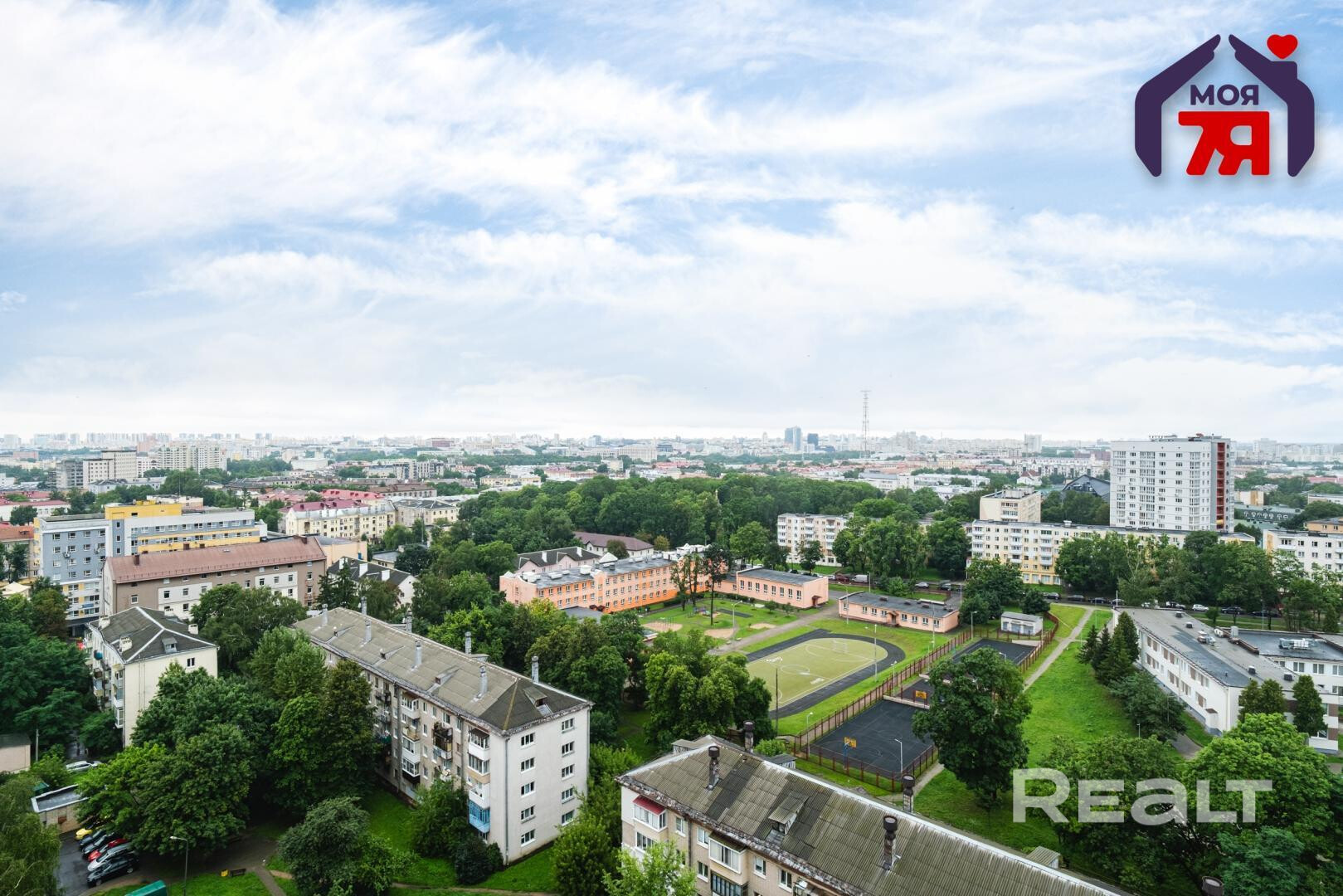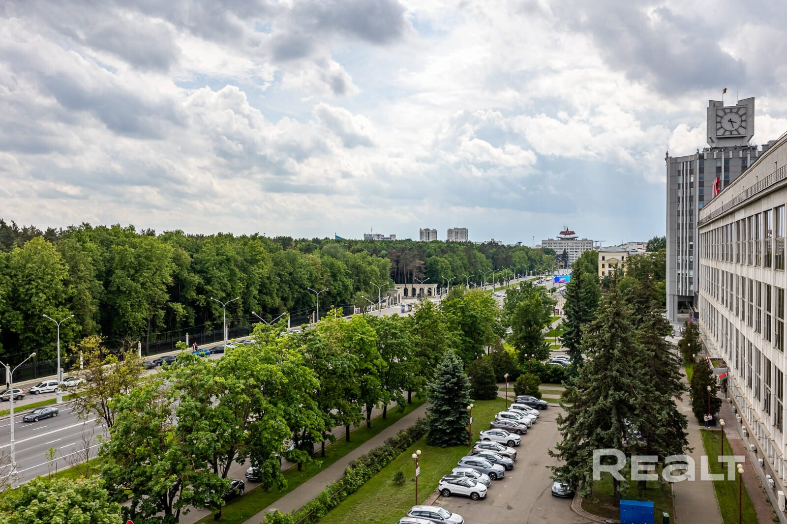 Из окон открывается вид на зеленый парк и город. Вот как это выглядит.
