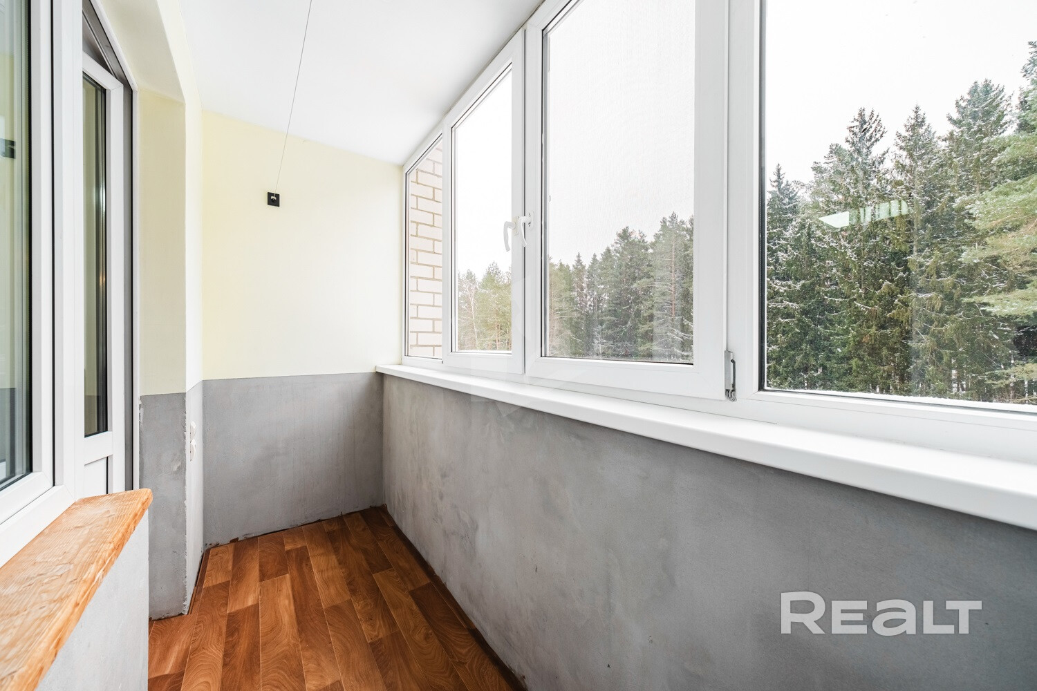 Окна в квартире выходят на разные стороны, а с лоджии открывается вид на лес.
