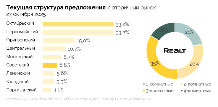 Динамика предложения по всем районам показала разнонаправленные изменения. Существеннее всего это коснулось Заводской района — плюс 3%, а также Ленинского района — плюс 2%.
